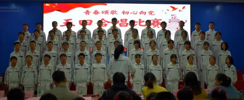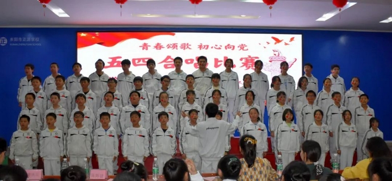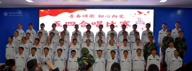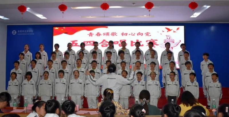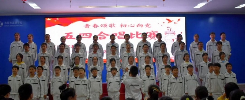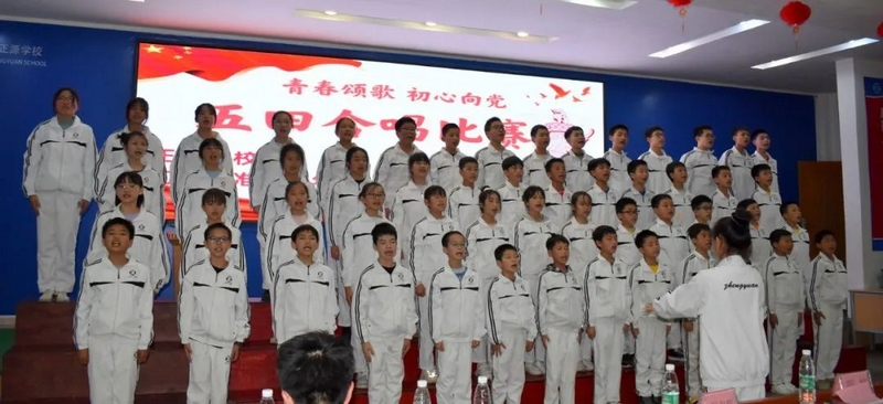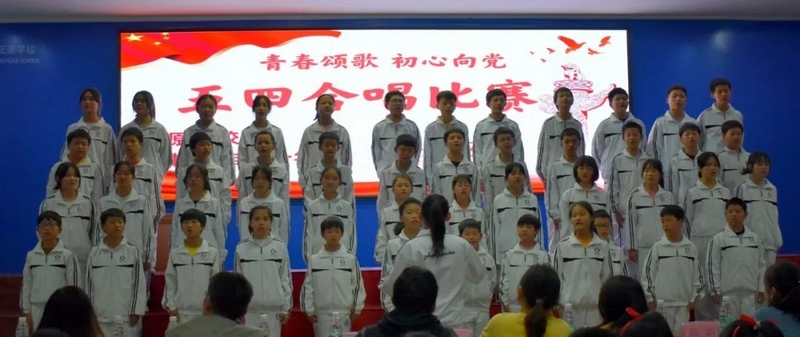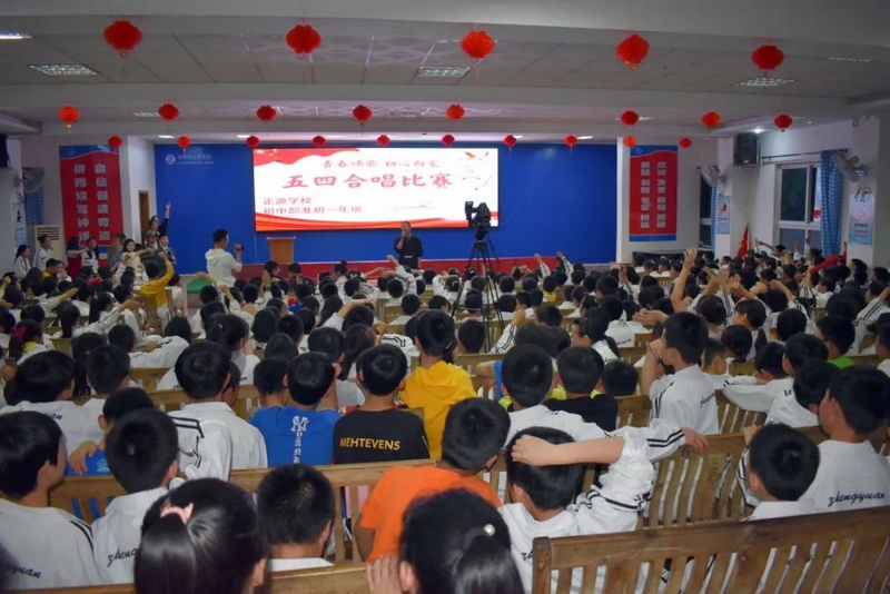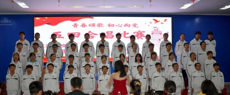 为了隆重纪念五四爱国运动,激发广大师生爱党爱国热情,正源准初一年级于4月6、7日在学校报告厅举行了以“青春颂歌,初心向党”为主题的合唱比赛。此次比赛前同学们已经准备了很久,音乐老师和班主任们精心地为同学们编排了动作并置办了表演道具,有时晚自习也能听到教学楼里传出激情的爱国歌曲。