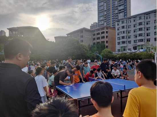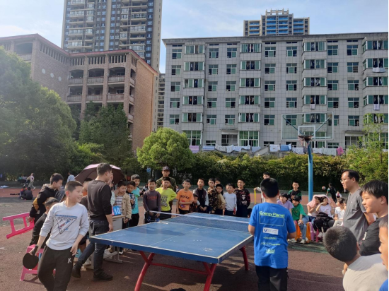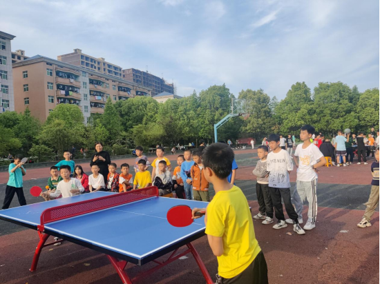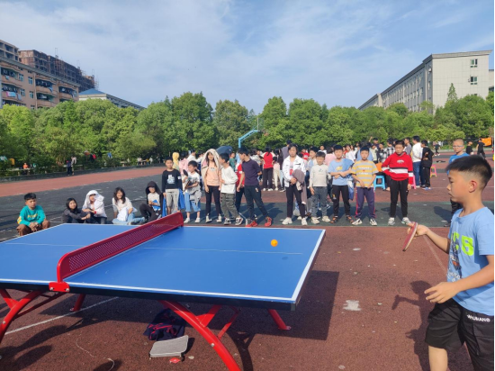 比赛于4月19日开始。三个年级每班四名队员组成一个团体进行团体赛。乒乓球是小朋友们都喜欢的一项体育运动,技术水平势均力敌。比赛中精彩迭起,直拍、横拍、扣球、旋转球、弧线球等都一一得到运用和表现,观众热烈的喝彩声,兴奋的“好球”声不断。
