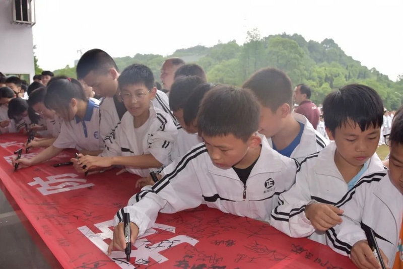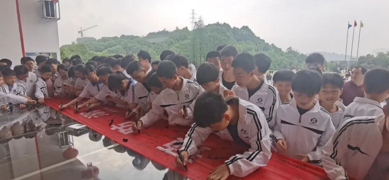 来自准高一年级272班的学生代表肖谦同学结合身边的事例与自己的见闻感受发表主题演讲,并率现场全体同学庄严宣誓。随后,现场学生代表们在活动横幅上郑重签名,并纷纷表示,不仅自己要认真学习防溺水安全知识、严格遵守防溺水各项安全要求,还要将学到的安全知识宣传给同学、家庭和社区,带动身边的人共树安全意识,共同守护生命之花。