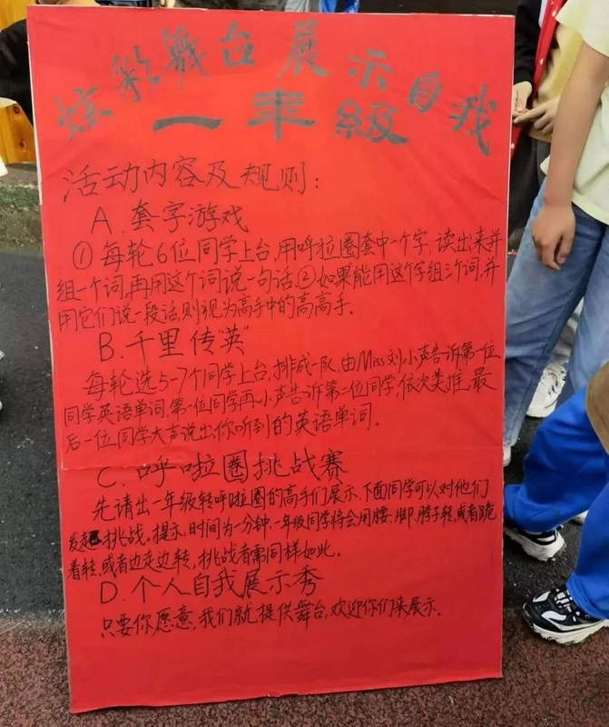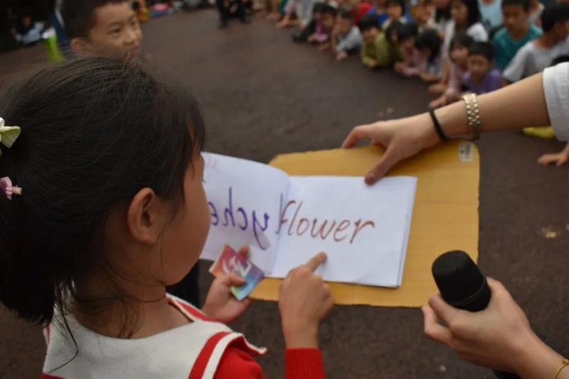 本次活动,承办方设计了四个环节,它们分别是:“套字生花”、“千里传‘英’”、“挑战呼啦圈”、和“秀出自我”。