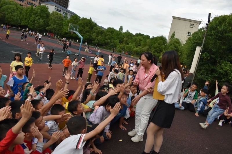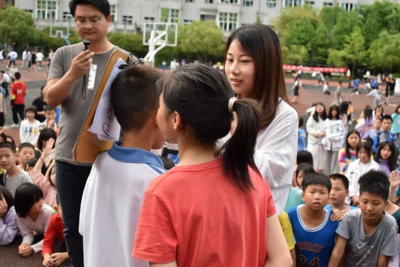 呼啦圈的激情还未褪去,才艺展示的精彩又将上演。进入到了“秀出自我”的环节。主持人胡老师用她青春活力的身姿,幽默风趣的语言,吸引了现场观众的注意力,也激发了同学们上台表演的欲望。舞台四周到处都是挥舞小手,跃跃欲试的表演者,胡老师甄选了一些同学上台,有的组团唱歌,有的玩转呼啦圈,有的讲了笑话故事,还有的秀了武术,真是精彩不断,掌声不息。活动临近尾声,胡老师灵机一动,抓住五月的第一个星期天是母亲节这个契机,给现场的孩子们适时进行了感恩教育,叮嘱他们要感恩父母,感恩师长,回报社会。胡老师现场采访了几个学生,让他们把自己心中想对妈妈说的话对着话筒大声表达了出来,引起现场师生的强烈共鸣。最后,胡老师带领现场所有同学齐声高唱《妈妈,我爱你》,将整场活动推向了高潮。