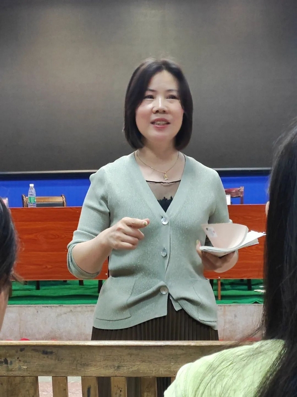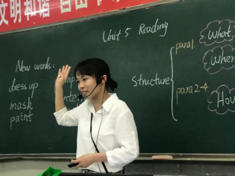 初一年级李永娴老师参加工作才三年,但无论是教姿教态,还是课堂设计,都让人感觉这是一位教学经验丰富的老教师。她上的是一堂高难度的写作课,初一年级的英语写作基本是通过模仿形式进行。李老师通过课文中有趣的故事告诉学生怎么开头、主体叙事、结尾,然后给出范例让学生模仿叙说,再要求学生根据视频内容和提示写作,过程轻松易懂,娓娓道来,学生很快就上手。大家一致赞叹:这是一堂很具教学效果的优质课。
