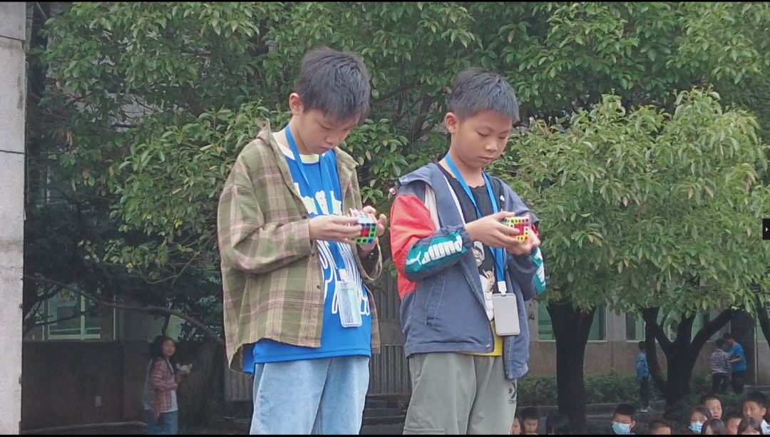 最精彩的要数第三个环节——“展示自我”了。也不知从何时开始,五年级悄悄掀起了一股“魔方潮”、“篮球热”。借着这次炫彩舞台的机会,爱好者们个个摩拳擦掌,试图大展身手。这不,音乐一响,爱好者们便手持魔方,自动自发地站上了舞台,勾、拉、旋、回……伴着欢快的节奏,小小的魔方在同学们的手中飞快地旋转,如疾驰的骏马奔跑在田野;如敏捷的猎豹飞扑在草原,又如自由的鸟儿翱翔在蓝天之中……魔方的种类也是各式各样:三阶、四阶、五阶、六阶甚至还有七阶!只听见一声声“老师,我拼好了!”、“老师,我的完成了!”、“老师,我的也可以了!”引得台下的观众们连连惊呼,声声叫好……