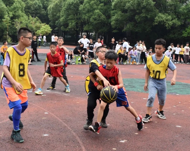一场场篮球赛,让各班同学兴奋不已,呼声不止。场上的球员们,有些经常打篮球,有些是第一次上场比赛。在比赛的过程中,他们真正能领悟到合作的重要。篮球这种团队类的体育竞赛项目,能让孩子们学习如何与人合作,培养孩子们的责任感和团队精神。