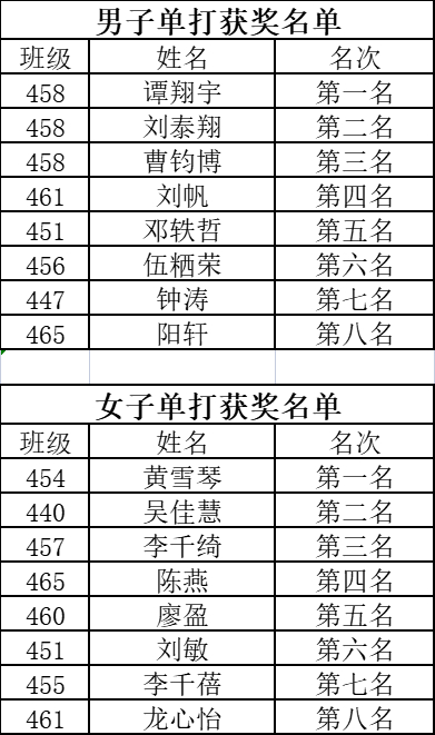 经过一轮又一轮的激烈角逐,男单、女单及男女混打的最终结果已出炉: