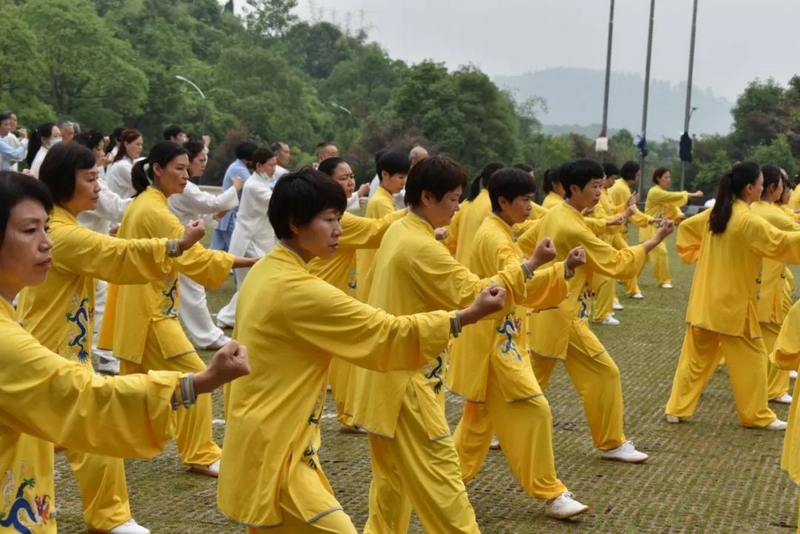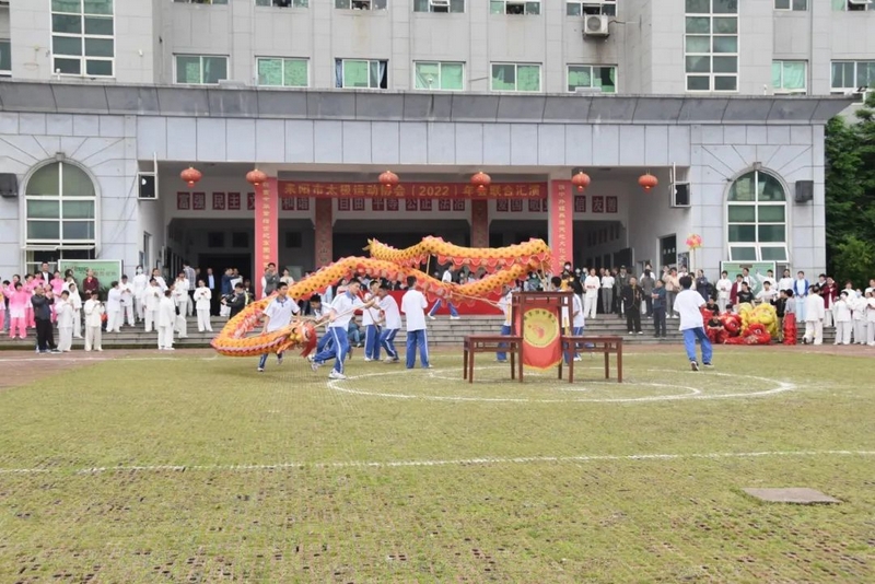 上午8点,雨后初晴,和风习习,来自耒阳市各片区的十余支太极队三百余人在正源广场进行联合汇演。《24式简化太极拳》《杨氏太极拳》《陈氏十三式太极拳》《传统杨氏二十八式太极拳》《四十二式太极剑》《太乙游龙拳》等15个太极节目连番上阵,或舒缓流连,或简洁刚劲,或大气磅礴,或行云流水……精彩纷呈,赏心悦目,被市政协副主席、市文旅广体局局长陆小勇盛赞为“翩若惊鸿,矫若游龙。”其间,由正源学校中学生带来的龙狮表演、由资深会员压轴的《太乙七十二闭手》更是令人耳目一新,称赞不已。