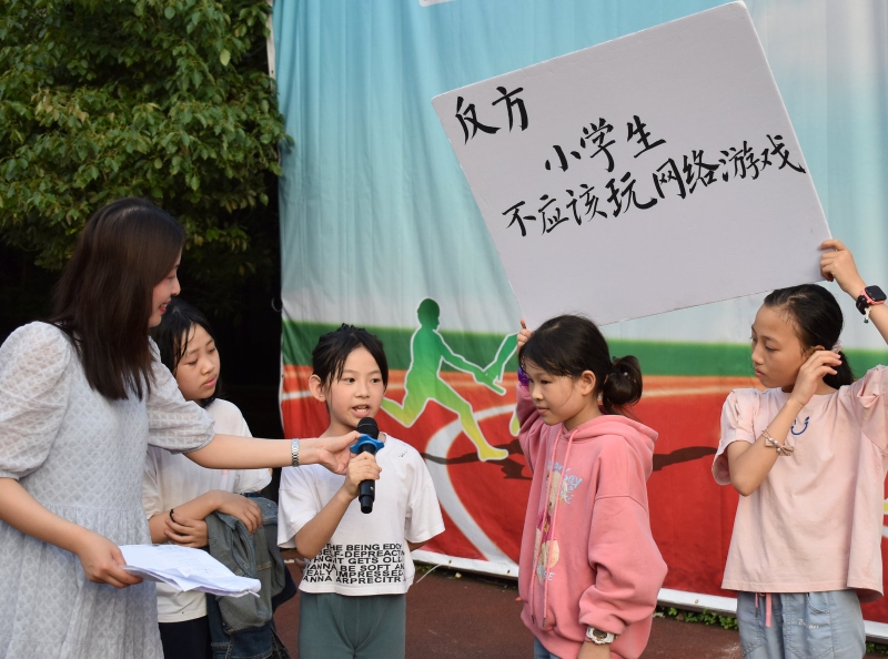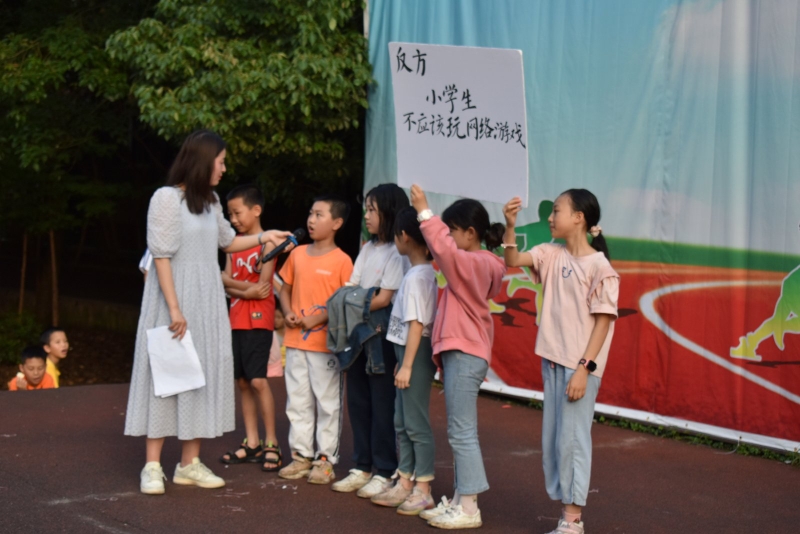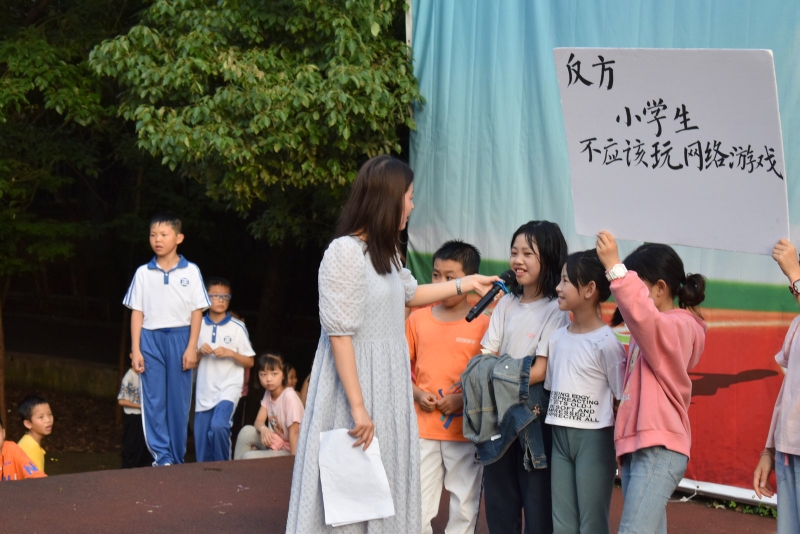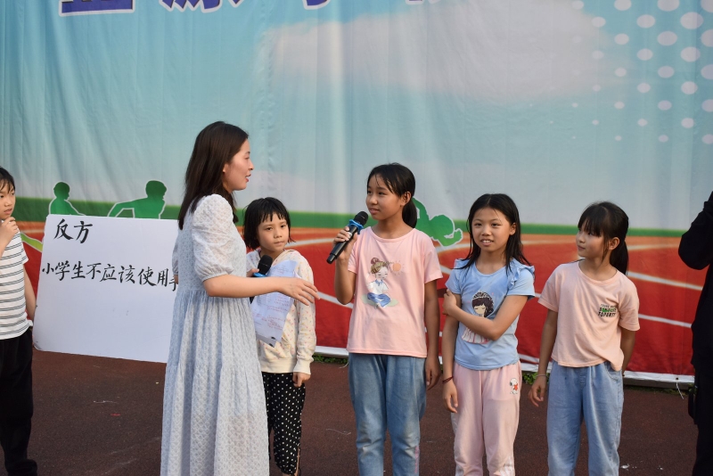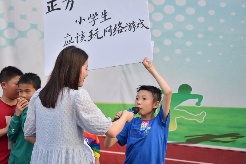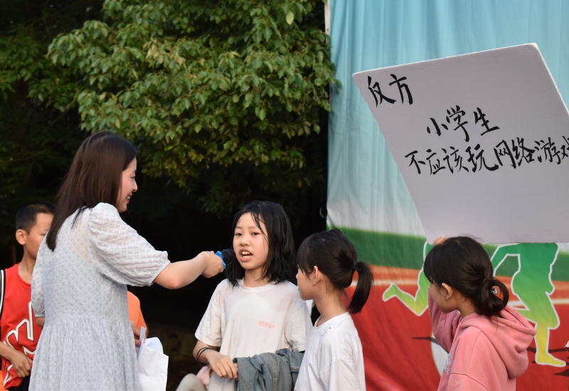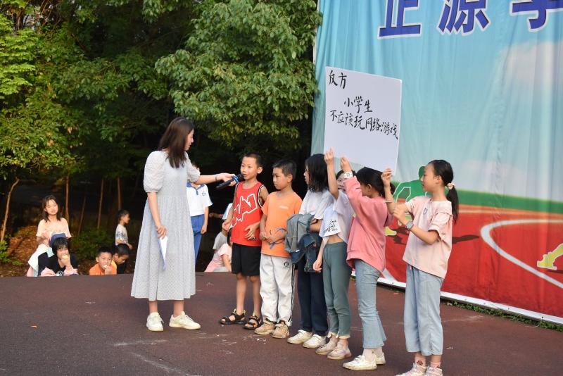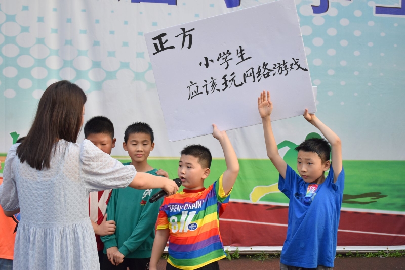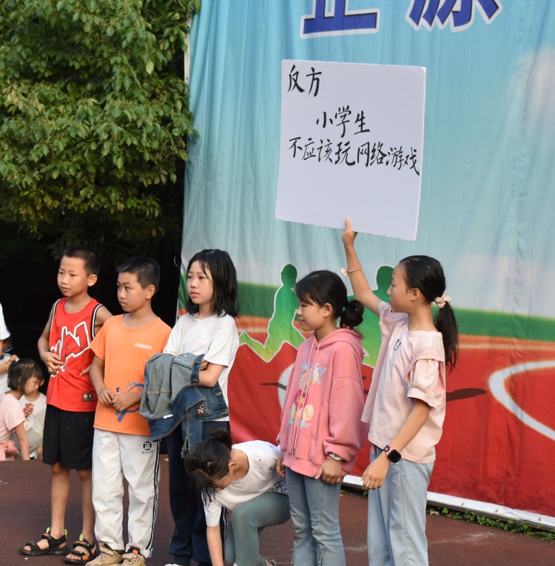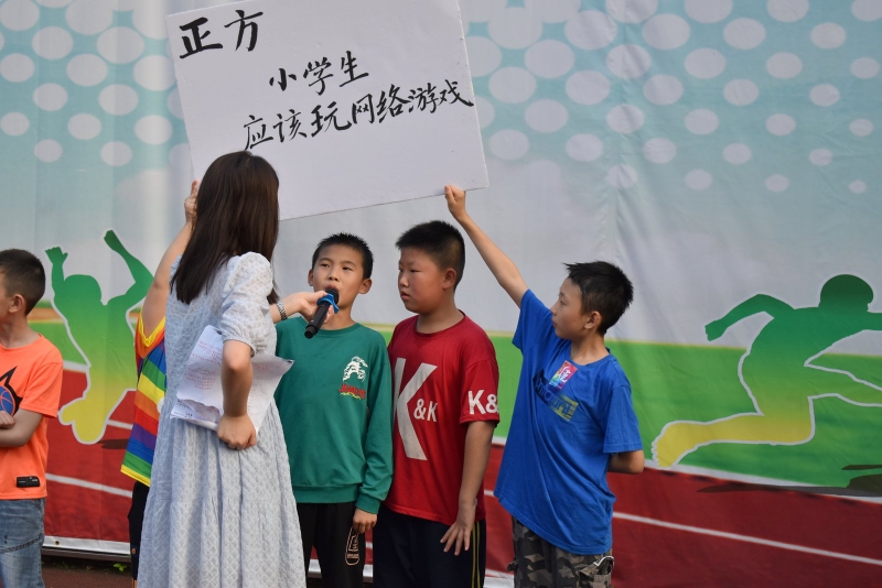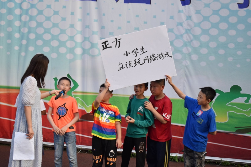 辩论结束,主持人借此契机,告诫孩子们玩手机也好,打游戏也罢,要适可而止,不得沉溺其中,既影响了学习,又伤害了身体。