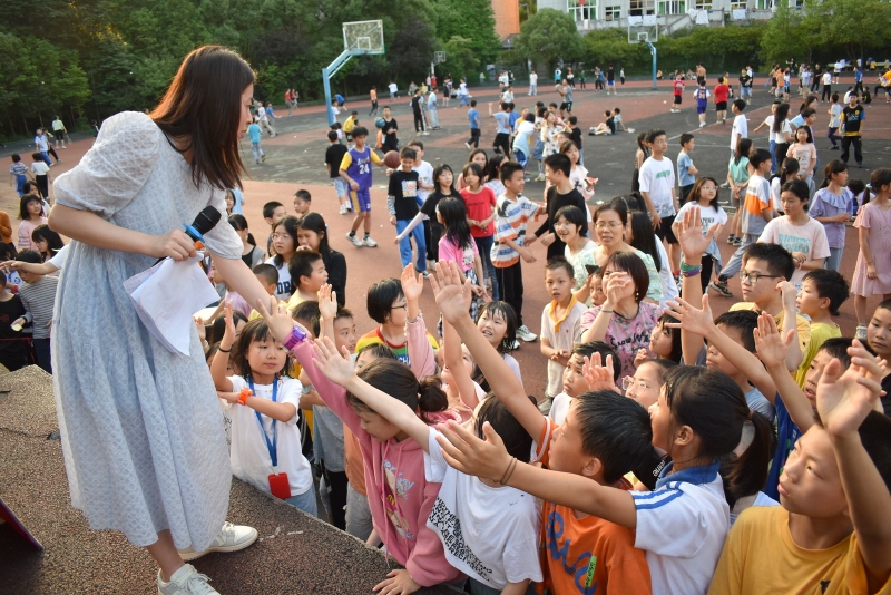 下午5:40,363班8位小女孩,和着悠扬婉转的旋律,踏着轻快愉悦的舞步,在小学部运动场主席台上即兴起舞,拉开了“炫彩舞台”活动的序幕。主席台下观众从运动场四面八方如潮水般蜂拥而至,热闹非凡。