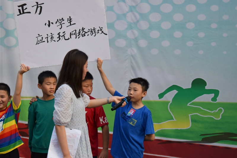 大家余兴未了,围绕“小学生应不应该玩网络游戏?”的第二场辩论又紧密锣鼓地开始了……