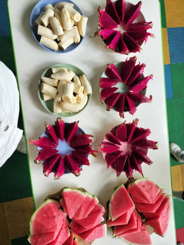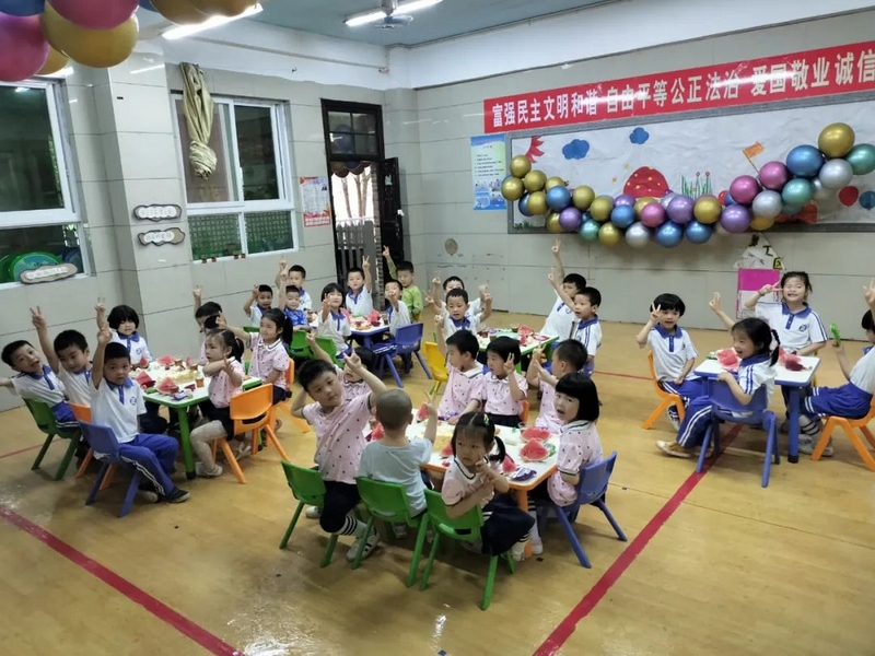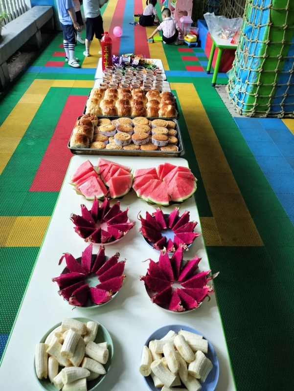 下午,学校为孩子们准备了各种水果,以及自制的点心,让孩子们的味蕾得到了极大的满足。小朋友们围桌而坐,大家举杯同庆,祝愿自己节日快乐。