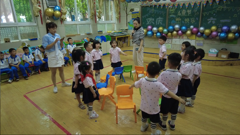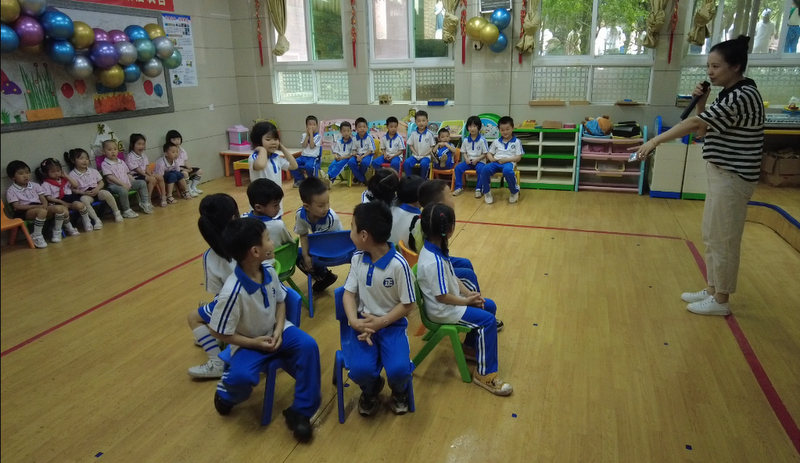第二个游戏活动是《抢椅子大战》。这可是非常经典的游戏,小朋友们百玩不腻,游戏规则都不需要老师多说什么,直接将椅子搬上来就开始了游戏。音乐响起,有些灵活的孩子一边跑着转圈圈,一边用手抓住椅子的靠背,不放过任何一把椅子,势必要抢到一把椅子坐下,争取最后的冠军。