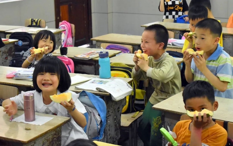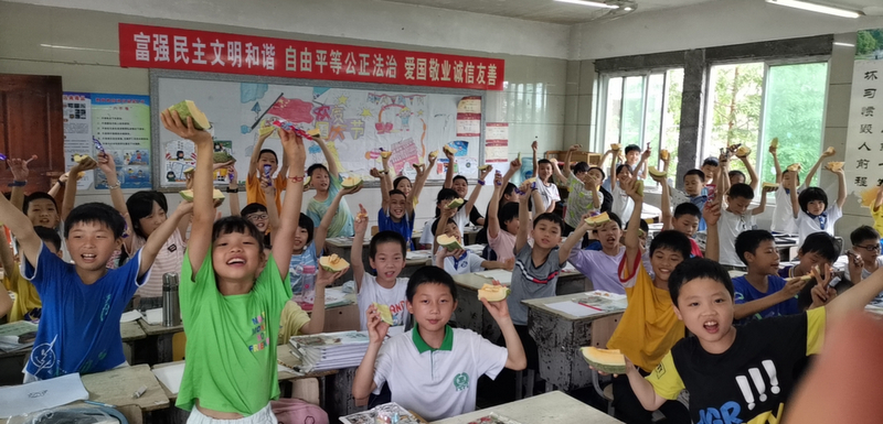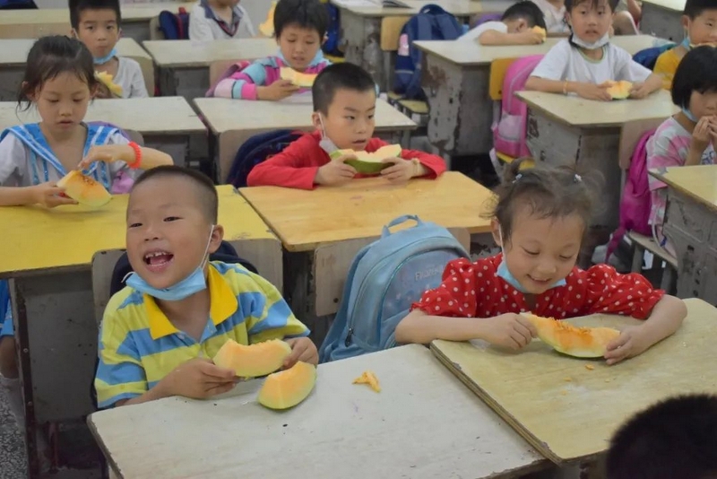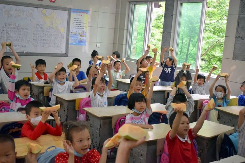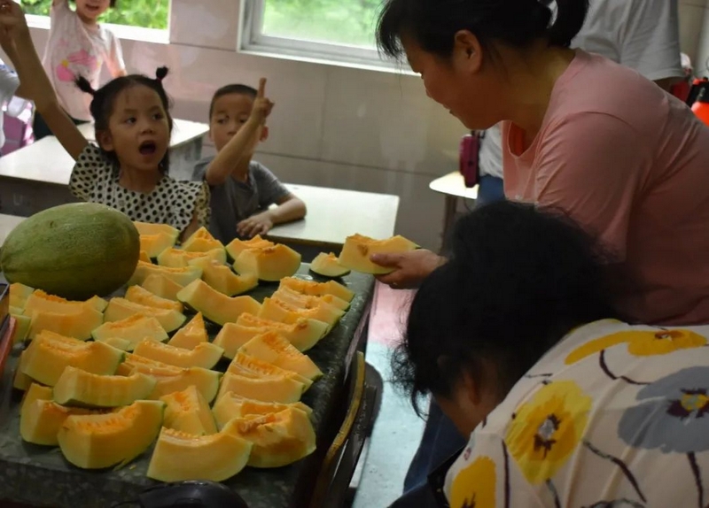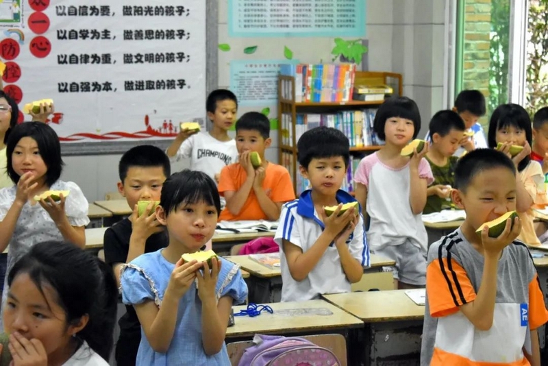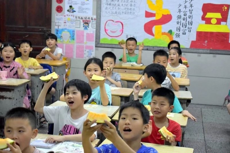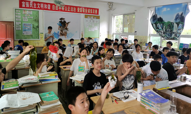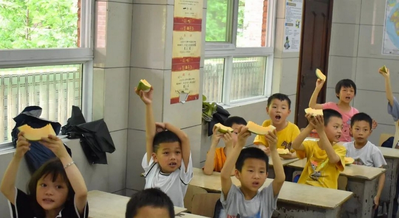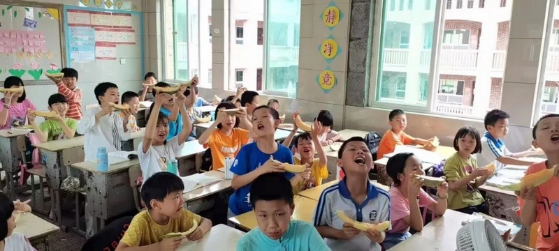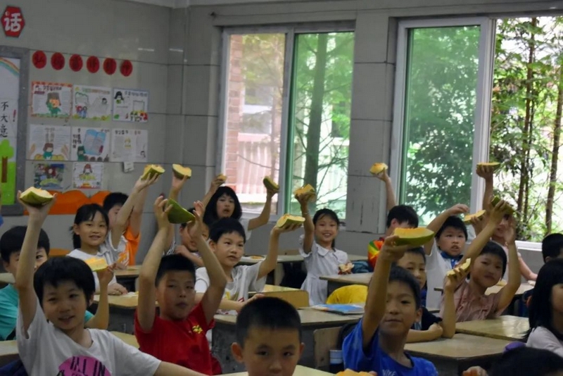 “粽香筒竹嫩,炙脆子鹅鲜。”太平圩乡寿州村正源农场里有鹅,但要领着鸭群漫山遍野捉虫撵蛇,何况数量也不够;农场里快养足一年的鸭子倒是有数千只,肥肥胖胖,数量管够,却要在中秋之前留着下蛋。那端午拿什么给孩子们吃大餐呢?学校后勤部门早已提前总动员。食堂早早就订好了节日菜谱:豆豉扣肉、米粉蒸肉、粉蒸排骨、青椒炒鱼、黄焖活水鱼、土豆焖牛肉、干椒大蒜炒牛肉……学校采购车昨天已到达中国最南端,连夜拖来一车海南产地鲜摘的哈密瓜;正源家庭农场预订的本地黄牛清晨刚刚宰好,正在长坪乡村热气腾腾卸块剔肉。