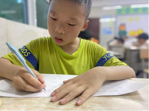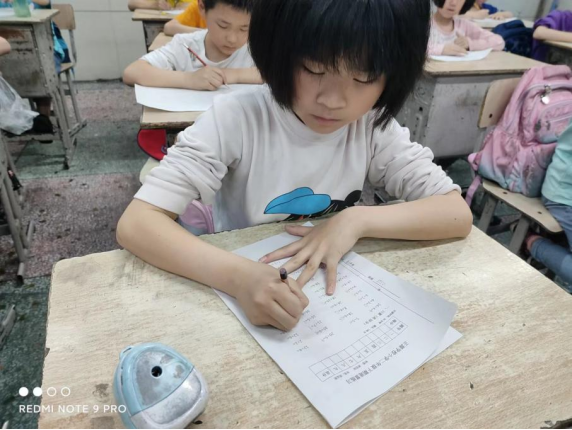 看,同学们多么认真!仿佛每一道题都是一级台阶,一级领奖路上的台阶;每个数字都像一个音符,一个迸发智慧的音符;他们冷静答题,细心检查每个算式,展示出扎实的基本功和灵活的答题技巧,出色地发挥了各自的水平。