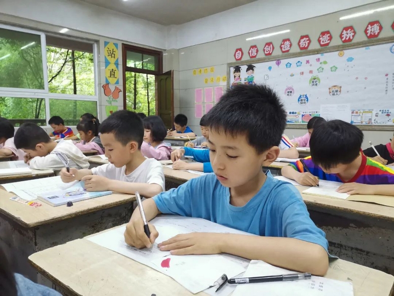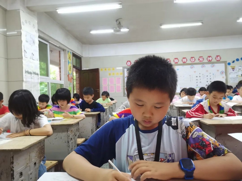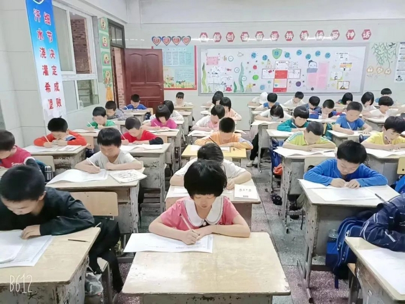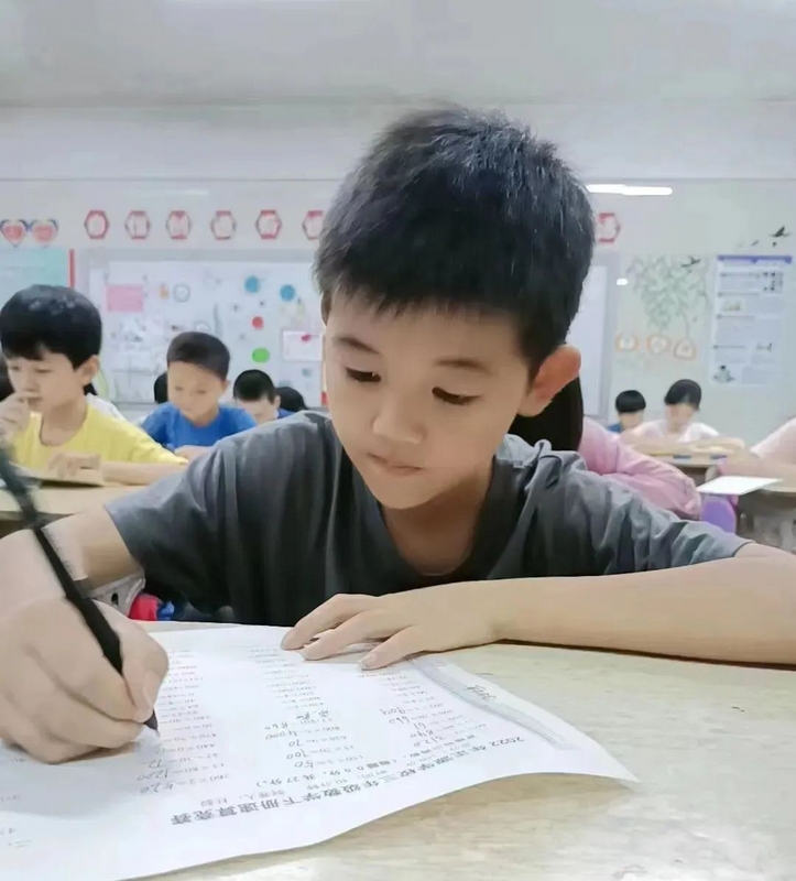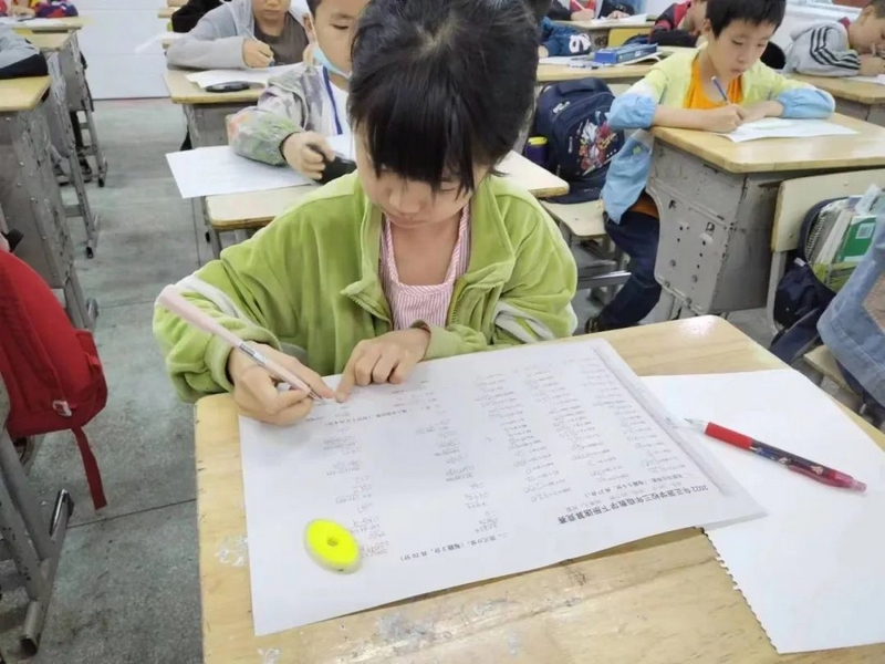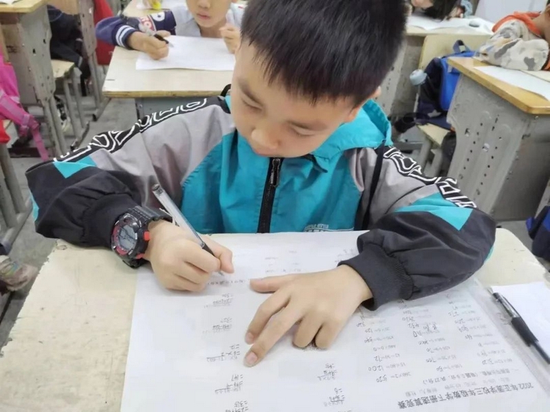 随着比赛铃声的响起,这场“没有硝烟的战争”吹响了号角!同学们认真工整地书写、细心计算,个个满怀信心、神情专注,他们比准确、比速度、比思维、比智慧,分秒必争,个个都想争当“速算小能手”荣誉称号。有的同学在做题时掐着手指,细心又快速地计算着,一副舍我其谁的王者模样。看着他们那一双双稚嫩的巧手握着笔,一串串数字就这样跃然纸上,监考老师们内心无比欣慰。