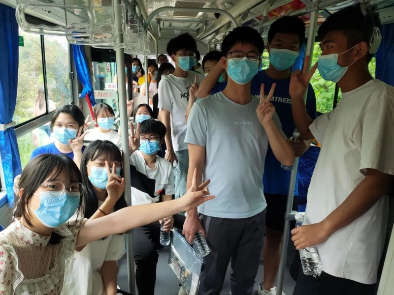 带队老师收拾好证件,清点好人数,迅即带领大家有序登车返校。回到学校还要一如往常地自习、就寝,在熟悉的校园、熟悉的教室、熟悉的寝室和朝夕相伴的老师同学们一起枕戈待旦,从容淡定养精蓄锐。