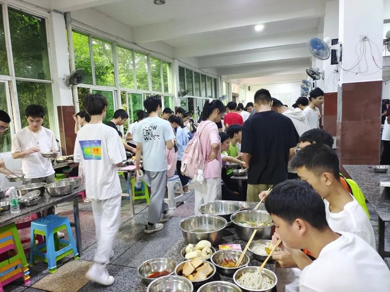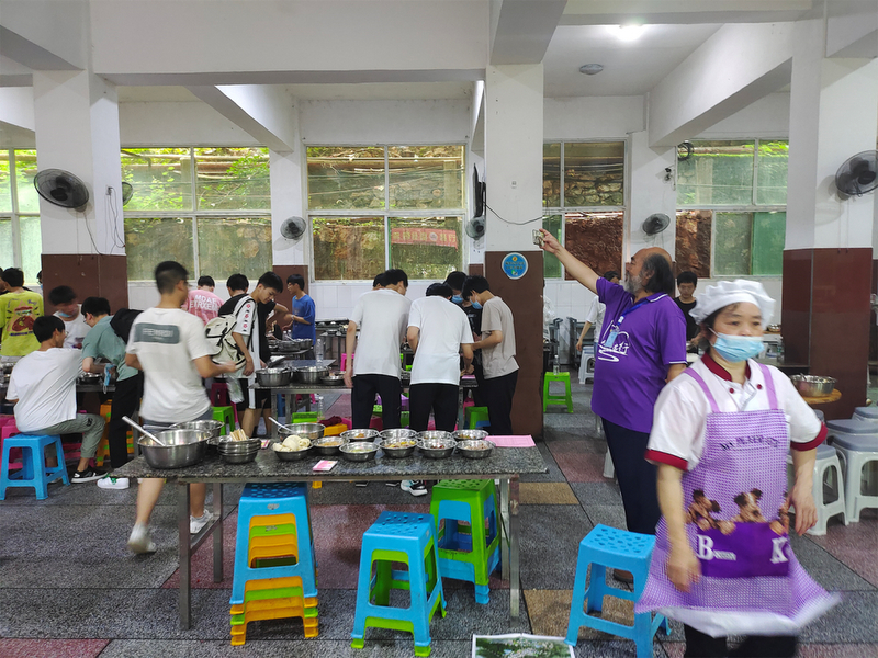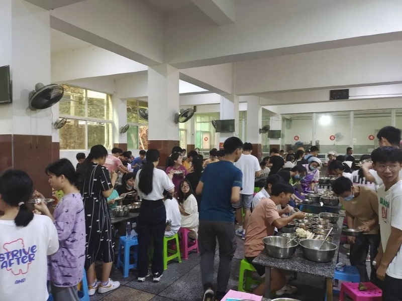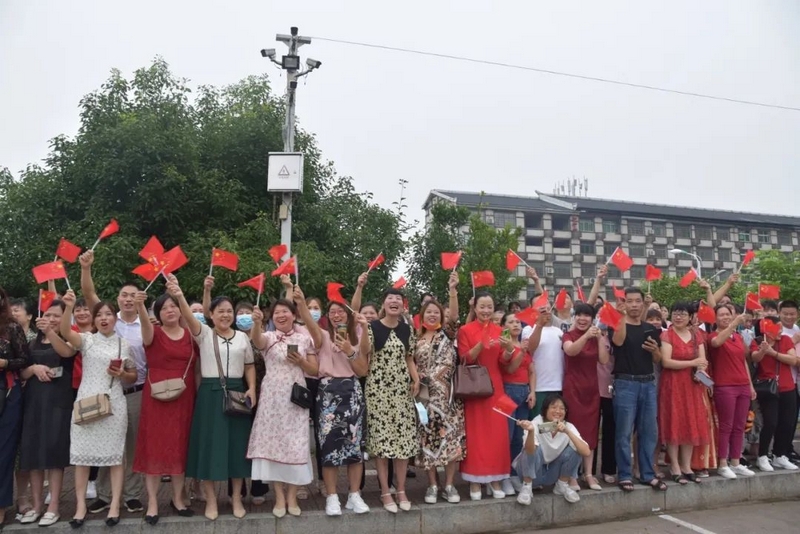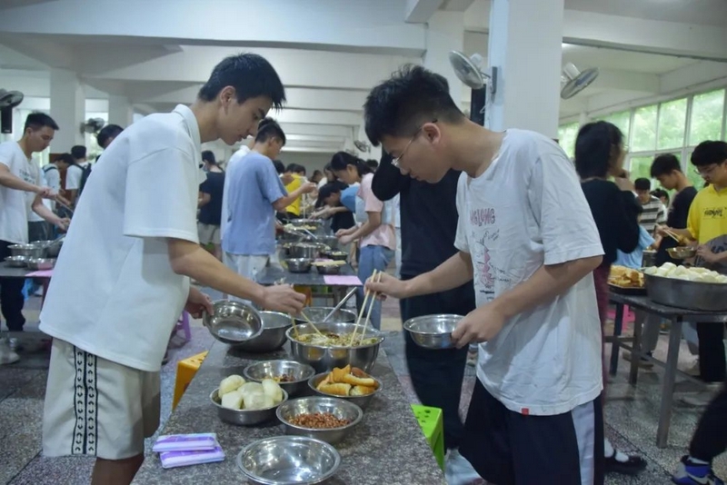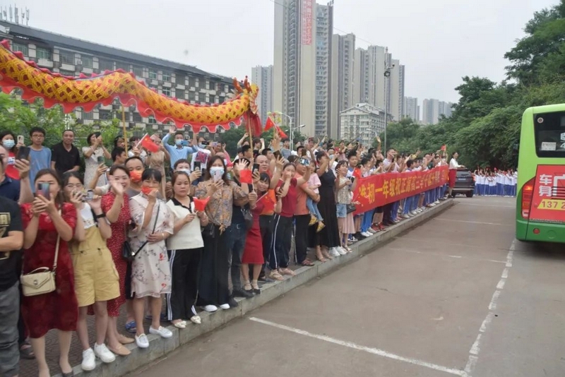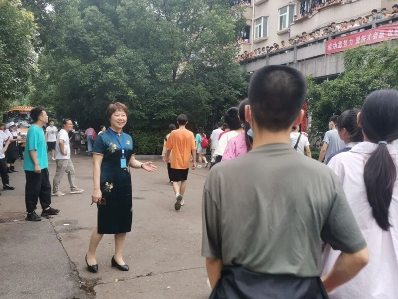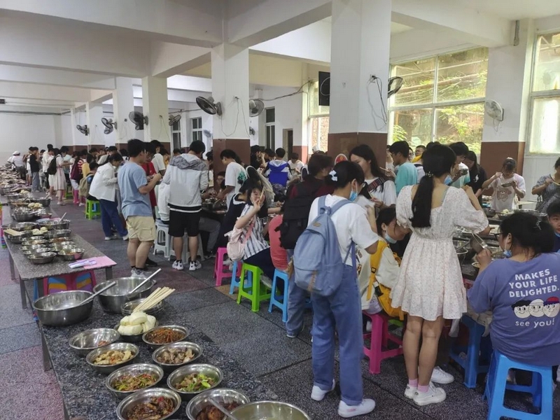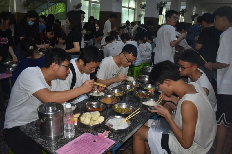 下考归来,孩子们一路有说有笑,沿途欢呼高歌。看到同学们一脸的轻松愉悦,罗校长也高兴得眉开眼笑。一路春风得意回到校园,车队径直开到食堂,校长夫人梁老师身着旗袍,正笑盈盈地在食堂门口跟大家招手致意。梁老师带着学校后勤团队精心准备的八菜一汤高考餐正热气腾腾为旗开得胜的学子们接风洗尘。