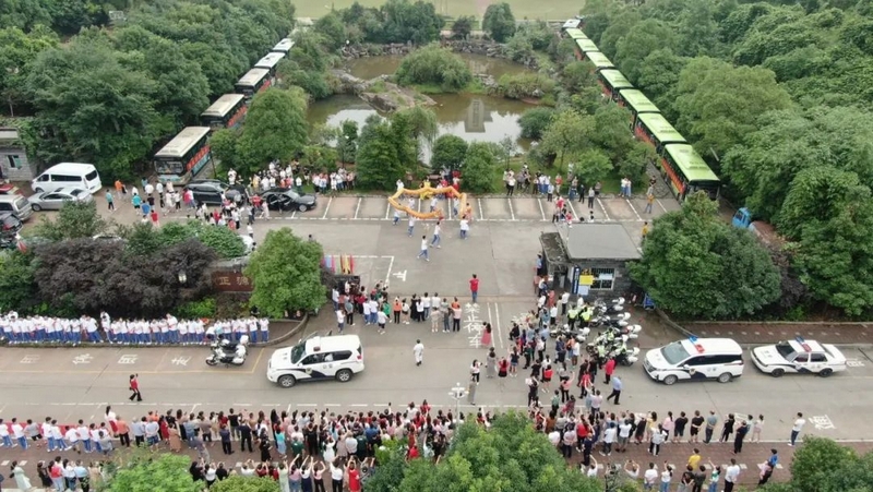 8点过8分,罗校长轻点油门发动头车,亲率送考车队长龙驰出南门,浩浩荡荡奔赴考场。