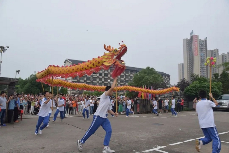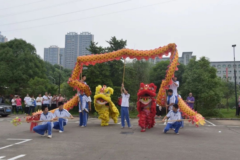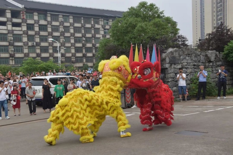 憨狮萌动,金龙盘旋,薪火相传的正源龙狮队在南门太极池畔腾跃起舞,学弟学妹们为学哥学姐擂响战鼓,助威壮行。