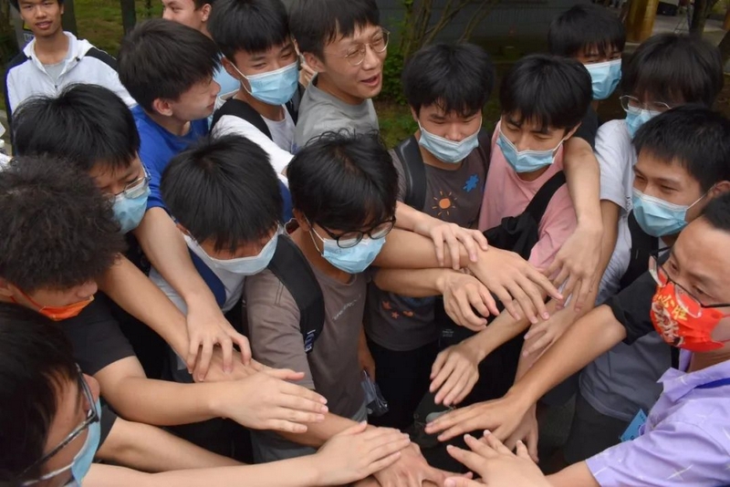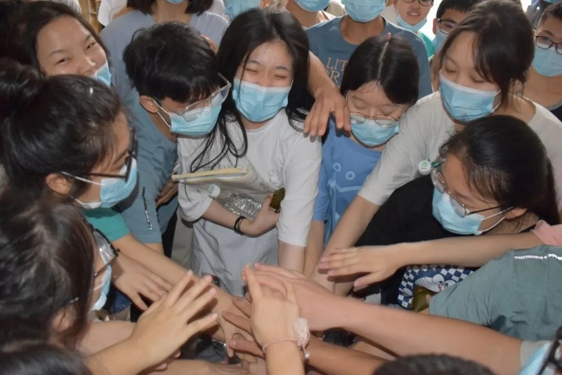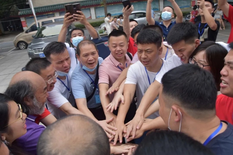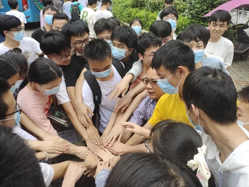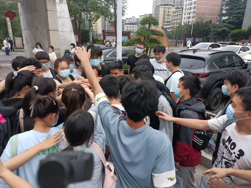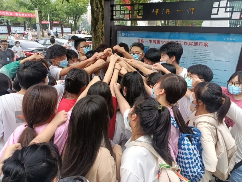 雄壮有力的击掌助威此起彼伏。罗校长和老师们轻轻挥手,目送孩子们大步流星迈进考场,继而再次聚拢,跟刚刚赴考的学生一样,掌心相叠围成一圈,豪情万丈高呼一句:“正源学子,天下无敌!”正源学子寒窗十年,等的就是这一天;正源老师育人数载,盼的就是这一刻。此时此刻书剑出鞘笔走游龙的正源学子,就是老师和校长引以为豪的最大骄傲。