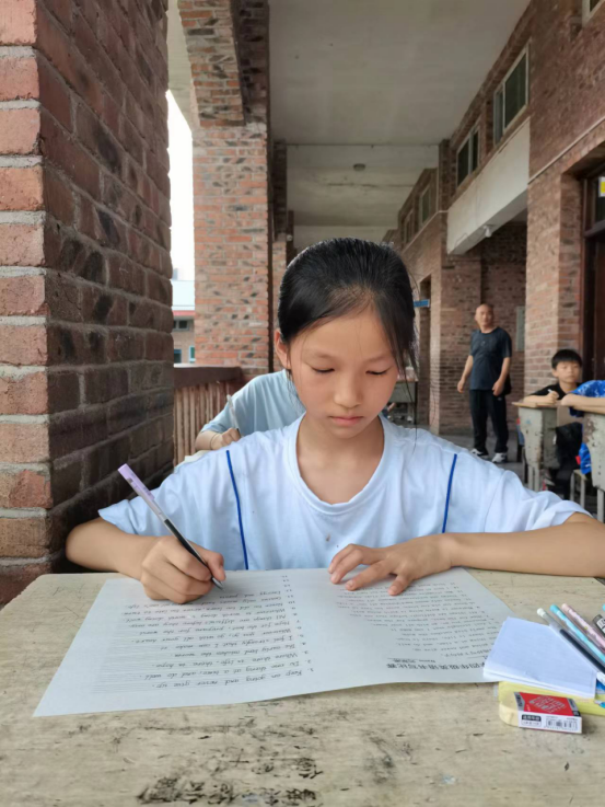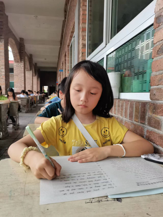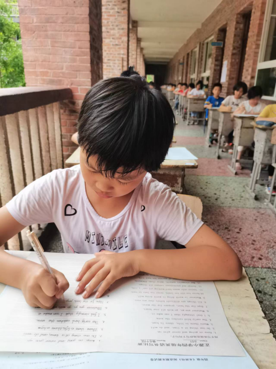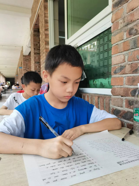 本次英语书写内容以英语名言警句为主, 比赛课桌按考试要求均匀拉开,时长为30分钟。孩子们拿到试卷后,就开始一笔一划地认真书写。一个个优美的字母在他们的笔尖流淌,孩子们坐姿端正,屏气凝神,小心翼翼的写好每个单词。每个孩子都力争把自己最满意的作品交到老师手中。