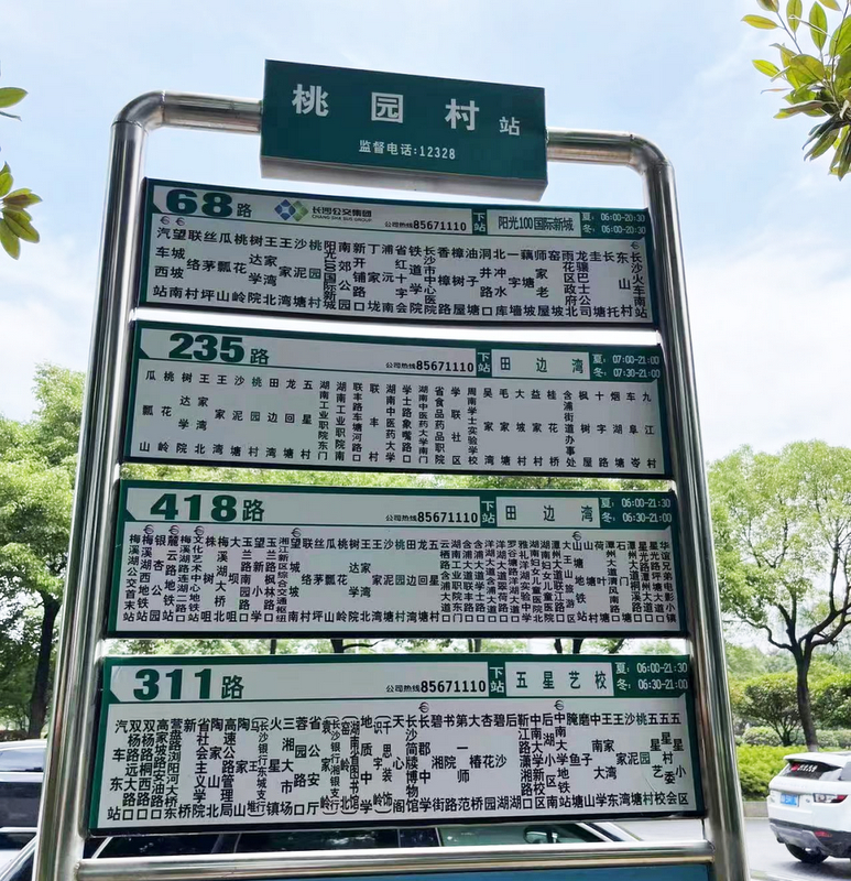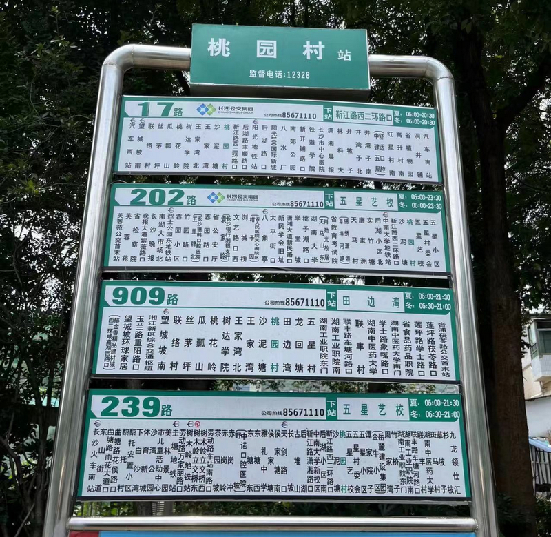 -乘坐360路或703路公交车到雅礼中学,转乘239路到桃园村公交站下车即到