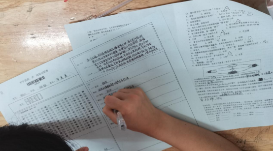 伴随一阵淅淅沥沥的雨,下午的政史地竞赛,拉开序幕。题量大,六十个选择题,三个大题,涉及范围广,从“杂交水稻之父”到“成就动机”,从“三个宗教的圣地”到“巴以争端的焦点”,从“春节压岁钱的来源”到“卢浮宫博物馆所在国家”…学生开启了各种各样的思考模式:有的皱着眉头转笔,有的把桌子上的橡皮擦反复翻转,有的单手托腮…