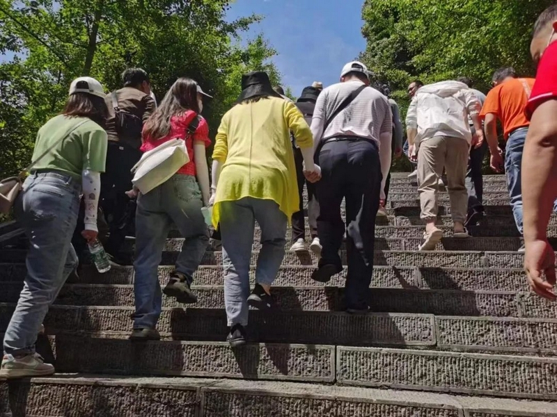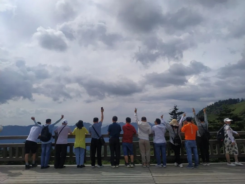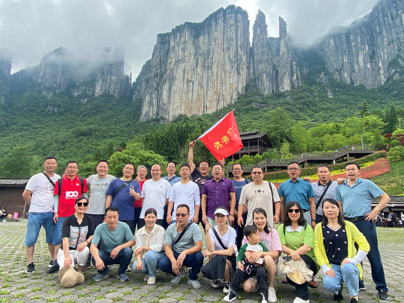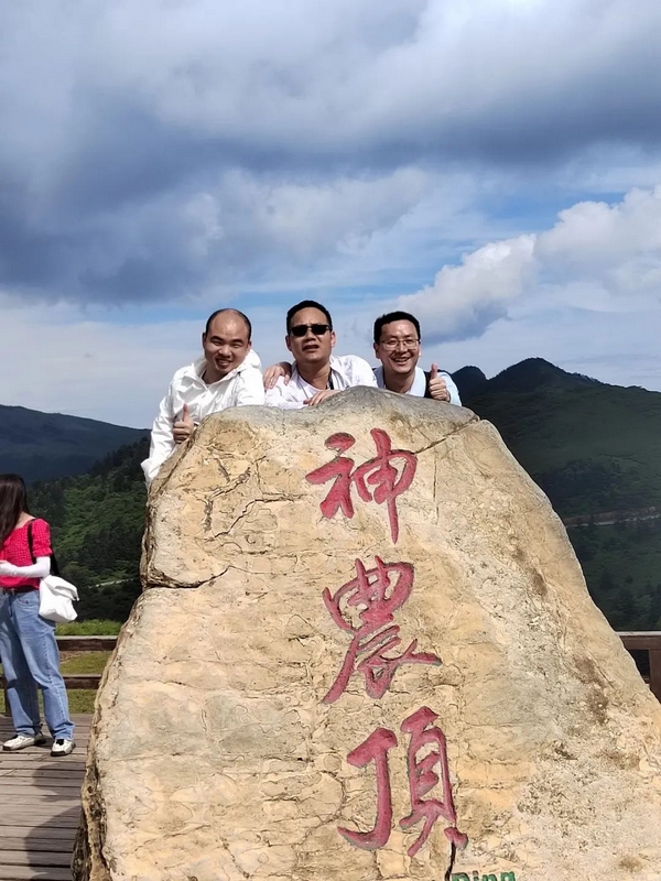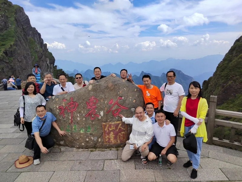 耒阳因“神农创耒”而得名,神农氏即炎帝,作为慕名从耒阳跨省而来的炎黄子孙,对于炎帝曾经生活过的地方,更是无比神往。眼前的神龙架主景区即是神农曾经采尝百草、架木为梯、救民疾夭、教民稼穑之处,以原始、神秘闻名于世。昨夜下榻的木鱼镇位于神农山脉南麓,森林覆盖率超过90%,较之正源校园80%的绿化率还要高出一筹。一觉醒来,一路的车程困乏消失得无影无踪,老师们倍觉神清气爽,早餐时互相玩笑打趣:“正源学生是生活在祖国的花园里,正源老师呢,今天是生活在野外的公园里。”神农架国家森林公园,果然名不虚传。6月16日清晨,经过一夜休憩养足精神的老师们开始在导游带领下畅游神农架,登顶神农顶。老君山下天生桥,奇洞、奇桥、奇瀑、奇潭浑然天成,水滴、游客、石壁、栈道绚丽多彩。寻根祭祖神农坛,群峰争奇,峰峦叠韵,聚群山之灵气,纳百川之秀丽。跨越2999级青石台阶登上神农顶,青铜铸造的神农鼎端坐山巅,岩石裸露、寒风凛冽、雾霭飘舞,宛若仙境。高山莽原,碧海长天,构成一幅幅山水画卷,一个个诗画长廊。伴随着导游那小泉流水响叮咚一般的讲解,我们沉醉在这一片山川林海之中。在神农顶,一览众山小;在板壁岩,看远近高低各不同;在金猴瀑布,看飞泉三叠如白练;在金丝猴救助繁育基地,看抓耳挠腮举家欢……自然的神奇与瑰丽、遗址的古朴与典雅、生命的不屈与壮观在眼前一一呈现,老师们叹为观止,流连忘返。沉醉于此处森林氧吧沁人心脾的舒畅惬意,游玩归来又在木鱼镇留宿一夜养精蓄锐,明日再一路向西去往恩施。
