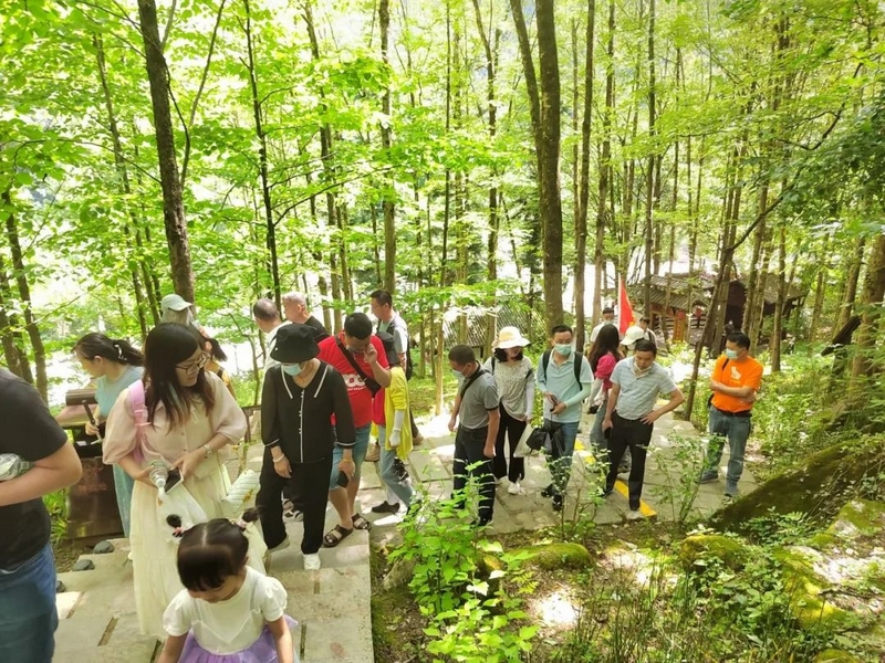 地理上分隔开湖南湖北的是长江与洞庭湖,6月14日在常德稍作休整后,15日老师们早早起床,迎着旭日横跨长江天堑。毛主席曾在湖北武昌挥笔写下:“一桥飞架南北,天堑变通途。”夷陵虽非武昌,江面的壮阔波澜却是一脉相承别无二致。当旅行大巴开上雄伟壮观的夷陵长江大桥时,浩浩长江水从脚下奔涌而过,一往无前涌向遥远东方,涌向辽阔大海,老师们止不住心潮澎湃,放声欢呼:亲爱的湖北,我们来啦!浩浩的长江,我们跨过去啦!因疫情防控需要,湖北省对于省外游客实行“三天两检”,高速路口和景区门口处处查验核酸检测报告和行程码,要求最为严格。这一“动态清零”政策的施行,一方面确实给行程带来了一些不便之处,但是归根结底,今天能够安全地自由旅行,又何尝离得开“动态清零”政策所保障的大环境呢?。个体的自由与集体的发展难免有冲突,社会的洪流中,我们每一个个体都是水滴,但是 正因为一颗颗水滴汇成涓涓细流,最终汇成了波涛汹涌的大江大河,奔流不息,跨越千年。长江天堑可以变通途,只要齐心协力,勇往直前,又有什么困难是不可以跨越的呢?一路风景壮丽,一路车程奔波。下午抵达神龙架林区南部木鱼镇时,一路舟车劳顿下来大家已是人困马乏。我们是放松休闲游,七八天的行程安排不用仓促赶时间,正好闲庭信步,各自休憩,夜宿木鱼镇,明日再去领略神秘瑰丽的神龙架风光。