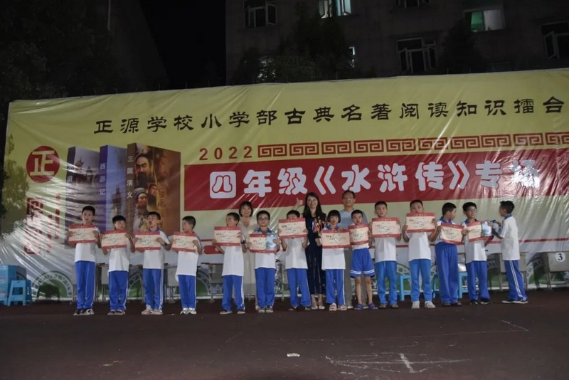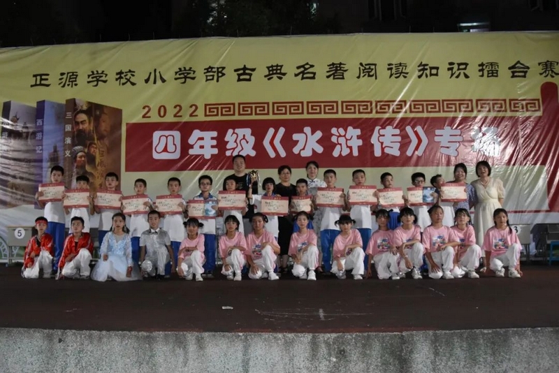 常言道:“腹中有书气自华,最是书香能致远。”中国古典名著阅读是正源学校小学语文教学独创特色之一。通过专业老师授课,视频观赏,辅之以竞赛、打擂等多种多样的教学活动,旨在激发学生的阅读兴趣,让学生从小养成会读书、爱读书、读好书的良好习惯。大江东去,浪淘尽,千古风流人物。我们要以史为鉴,敬重英雄,歌颂英雄,学习英雄,争做英雄。期待正源学子们,在学业上都能成为梁山好汉,打遍天下无敌手,考上心仪大学;将来走向社会,见义勇为逞英雄,惩恶扬善济危困。精忠报国留青史,正气凛然满乾坤。