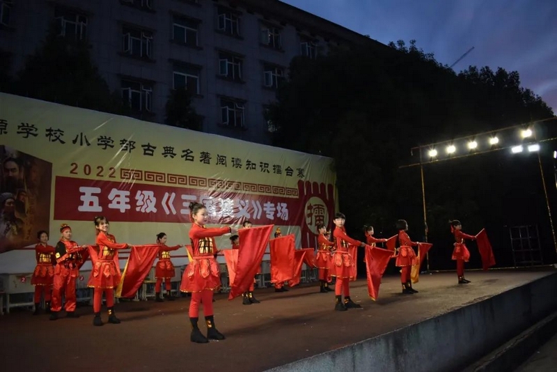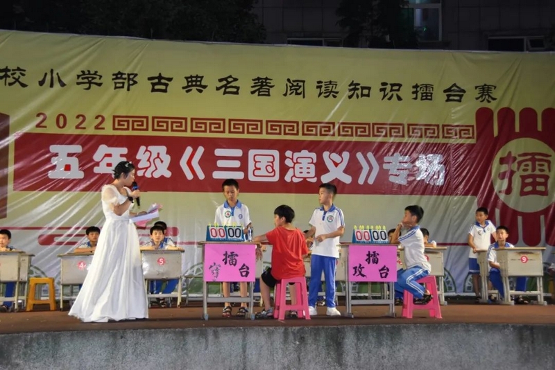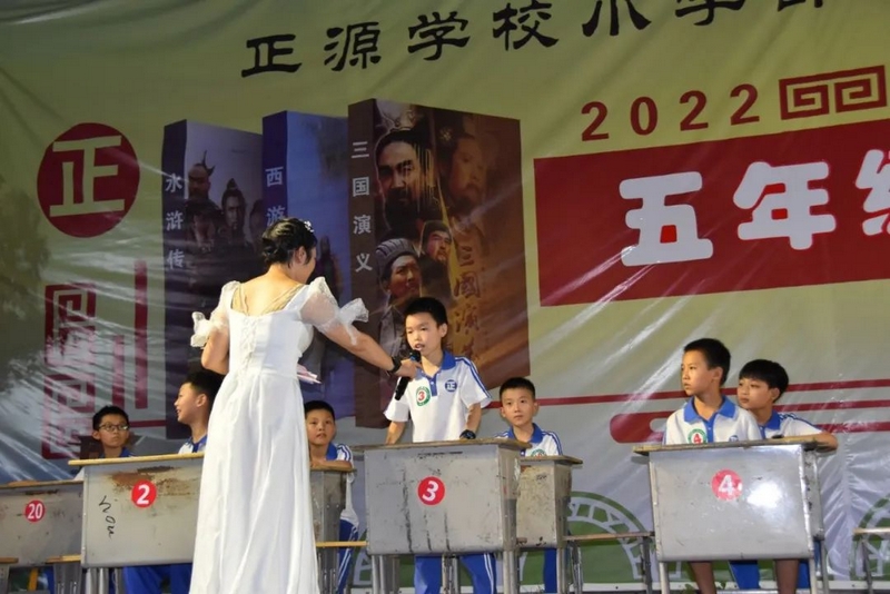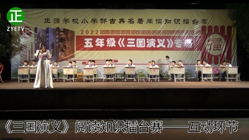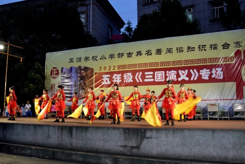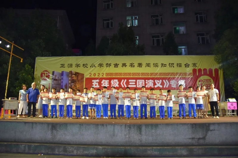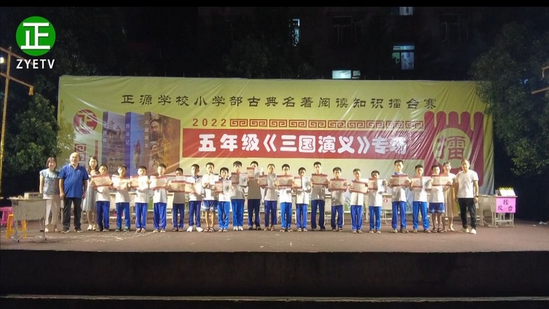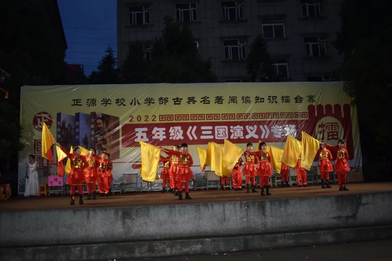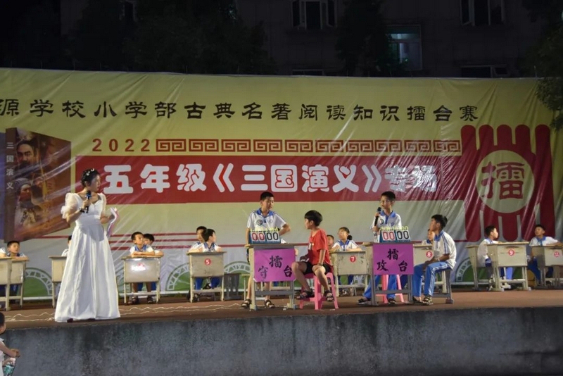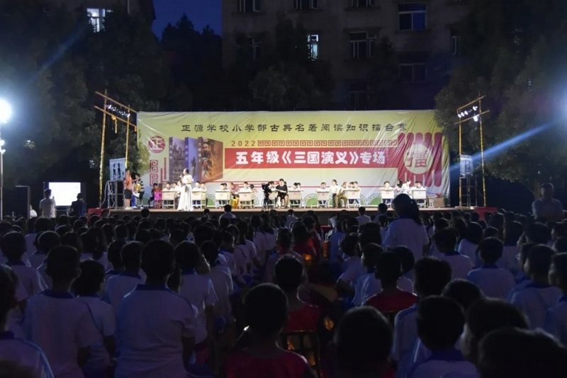 滚滚长江东逝水,浪花淘尽英雄。6月21日晚,正源学校小学部在运动场举行了五年级阅读《三国演义》知识擂台赛。本次擂台赛由5月14日初赛考试胜出的20名小英雄参加。将近两半小时的激烈竞争,让五年级全体师生共享了一场“体味三国文化,传承名著精神”的文化盛宴。