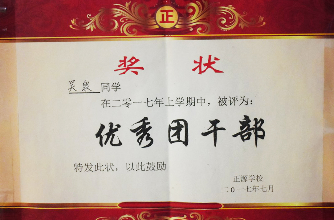 吴泉、吴舟两兄弟来自淝田,父亲吴增林、母亲罗菊华长年在杭州的制衣厂打工,两兄弟分别于小学二年级、四年级插班进入正源,是典型的留守儿童。哥哥吴舟已于2019年应届考取嘉兴学院,如今已读到大三准备考研。吴泉的成长之旅却多了一些波折。