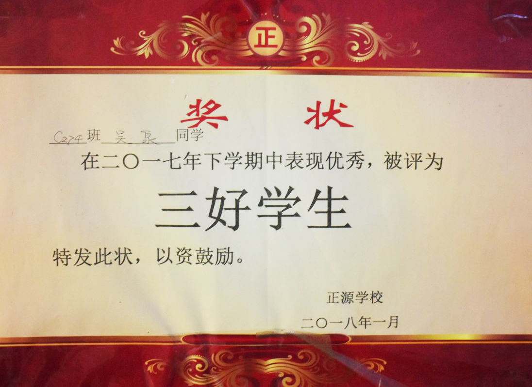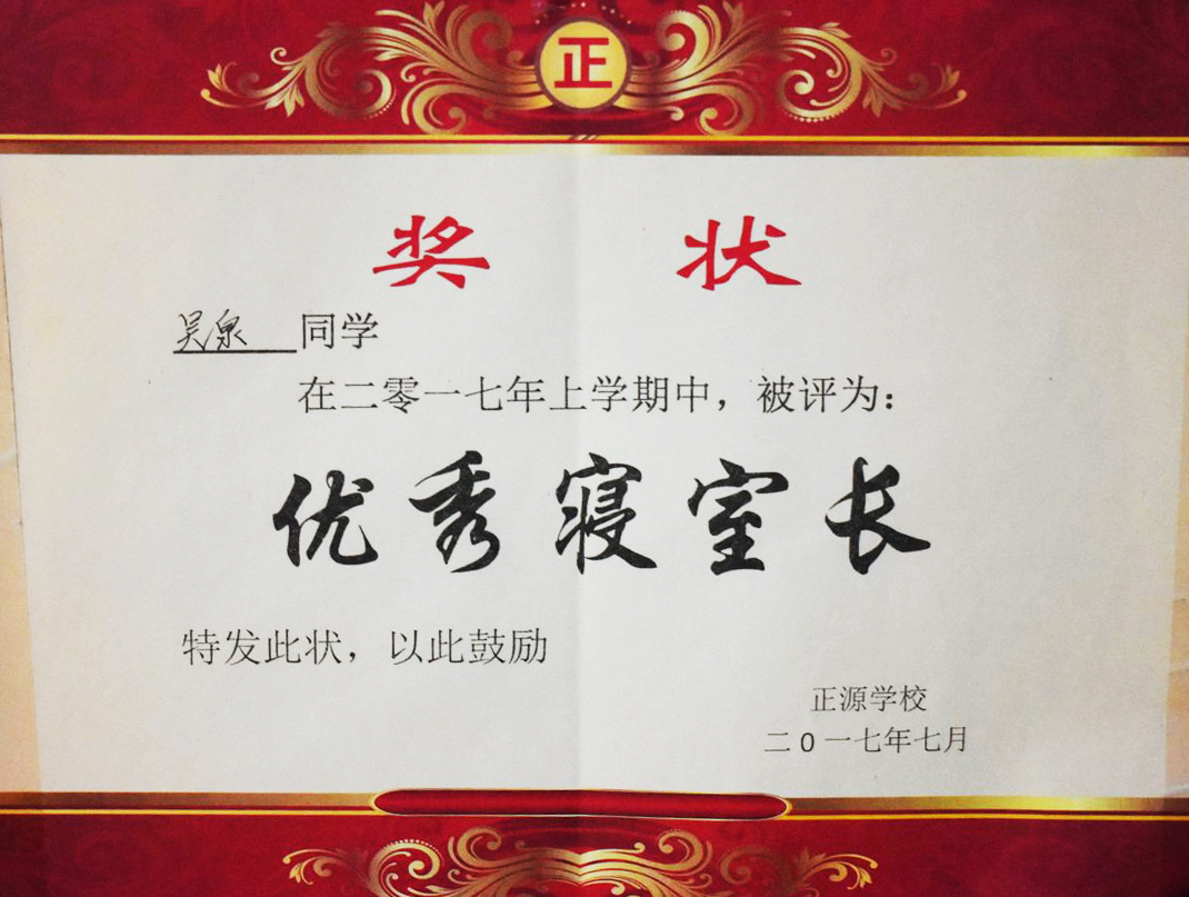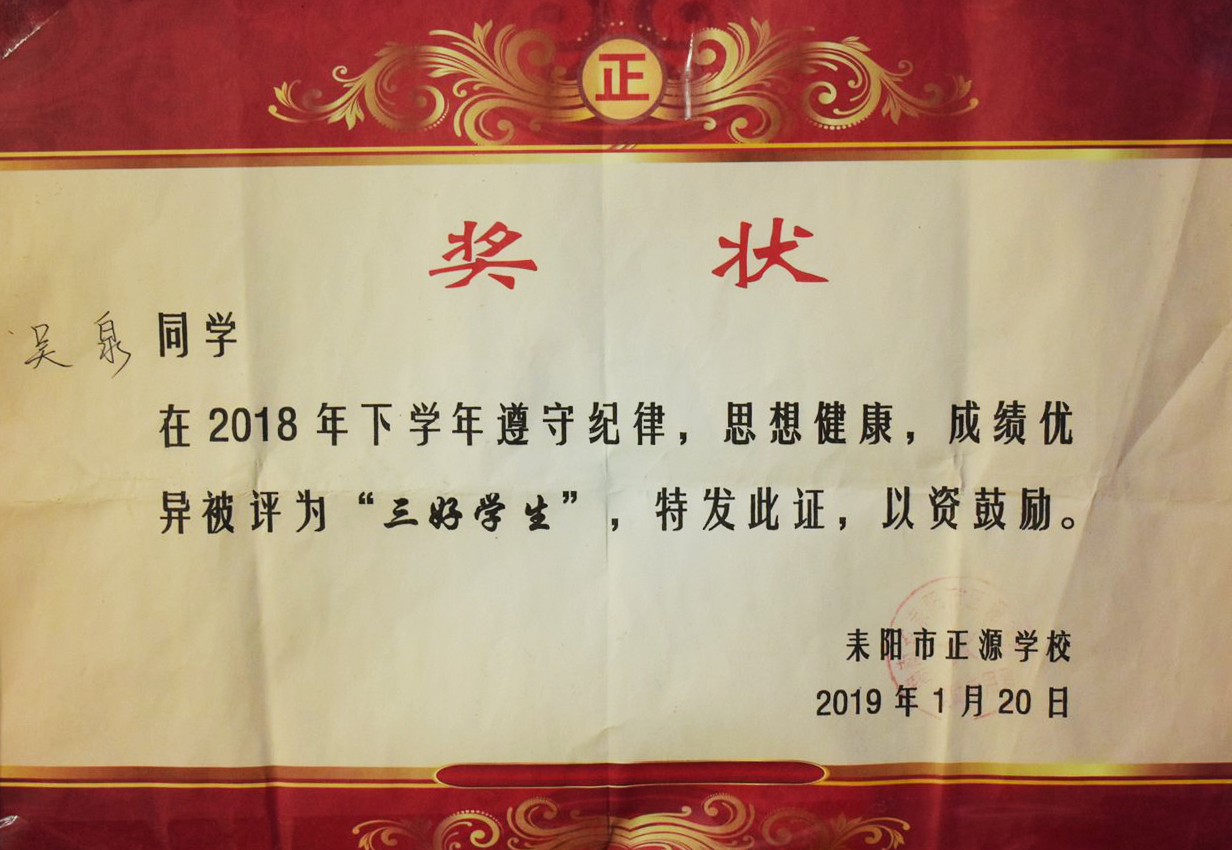 跟着吴泉爬上六楼,打开房门,老师们正准备换拖鞋,吴泉大大咧咧招呼一声“不用换,不用换,家里就我一个人呢”,开始斟茶倒水。从墙上的奖状一眼可以看出,吴泉、吴舟两兄弟都是在正源长大的。