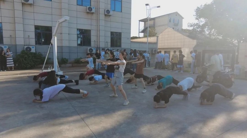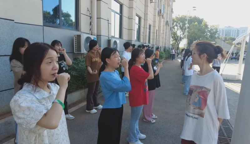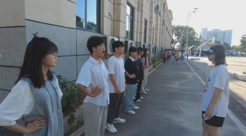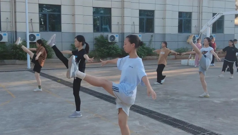 清晨的阳光隔着屋顶与树梢在操场投下片片荫蔽。传媒班同学在老师口令声中起蹲、踢步、憋气、长吁,塑形体,练呼吸。毕业于中南大学的杨高文、唐弘君老师带着音乐班学生围着操场在“嘟嘟嘟嘟”小步慢跑、练习发声。舞蹈室里,舞蹈生在活动关节、拉伸韧带,这是伴随舞者整个职业生涯,每天必不可少的日常早功。