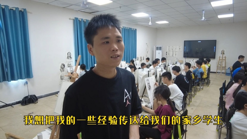 贺小华老师说,他是从耒阳太平圩乡寿州山村考进中国美院,十多年来走遍了全国各地的顶级画室。这么大的太阳下,换作其他大城市的学生一看要走路,往往就不愿意去画展了。“正源的孩子皮实,能吃苦。”贺老师说,正源的孩子在画画上感受到进步,看到成功的希望,就会满怀激情地勤学苦练,晚上练画练到半夜,也心甘情愿,乐在其中。他说眼前的正源孩子让他看到了自己的影子,想把这些跟自己一样的耒阳农村孩子培养进各大美院和985大学,是自己选择来正源的一大原因,也是对自己人生意义的一份期许。
