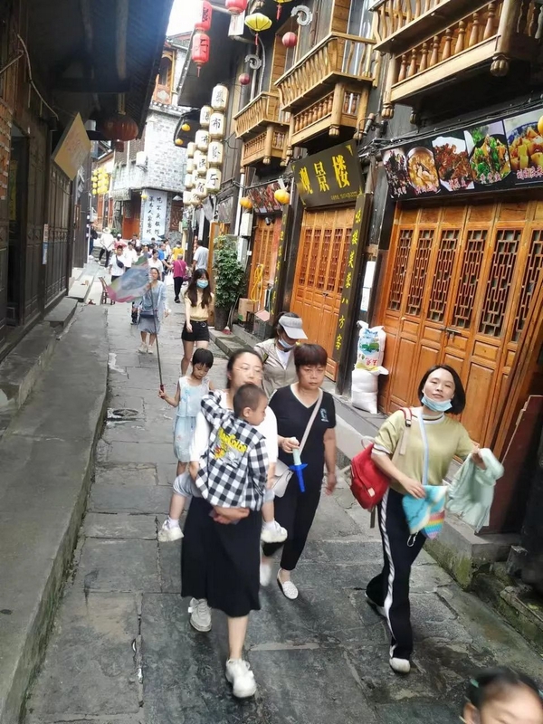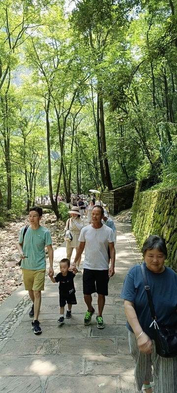 森林公园、贺龙公园、十里画廊、宝峰湖、黄龙洞。大家三五成群自行组团观光。晚上,穿行在充满遐想的民族殿堂——溪布街,白天满满的行程在惬意的漫步中得到释放和延伸.....别有一番风情。