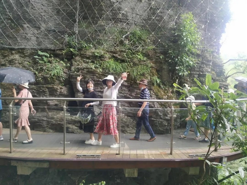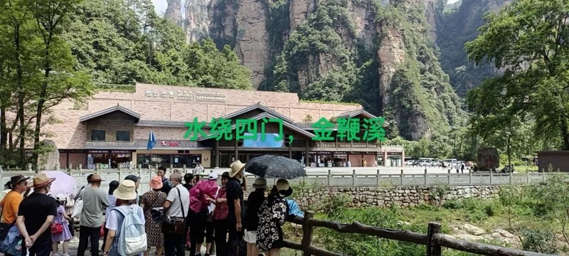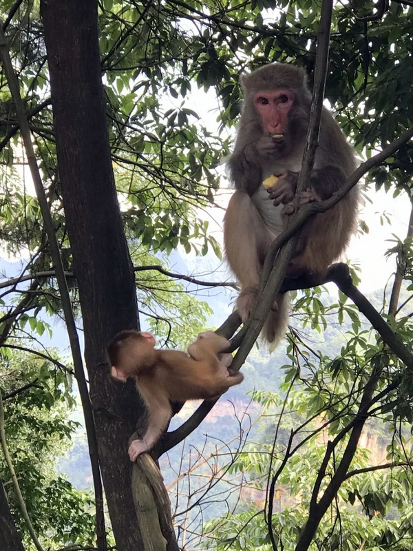 天子山的第一个打卡地是金鞭溪。金鞭溪是天然形成的一条美丽溪流,因巍峨陡峭的金鞭岩而得名。大家或在清澈见底的潺潺溪水中抓鱼、嬉戏,或驻足观看路边猴子上下攀爬。正所谓,“凉风习习笑声远,欢快景象画中溢”。