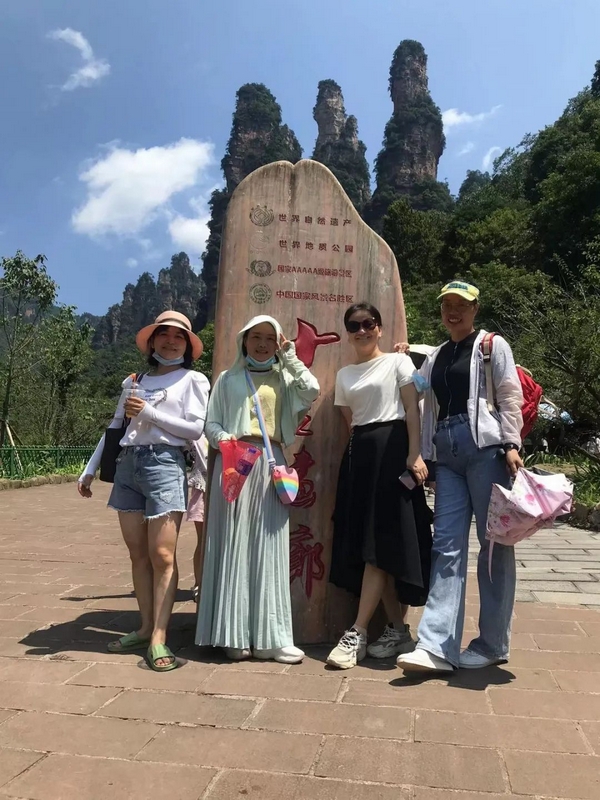 经过了一晚上的休息,第二天,老师们个个精神饱满,带着兴奋和期待我们游览了享誉世界的风景名胜区——天子山。