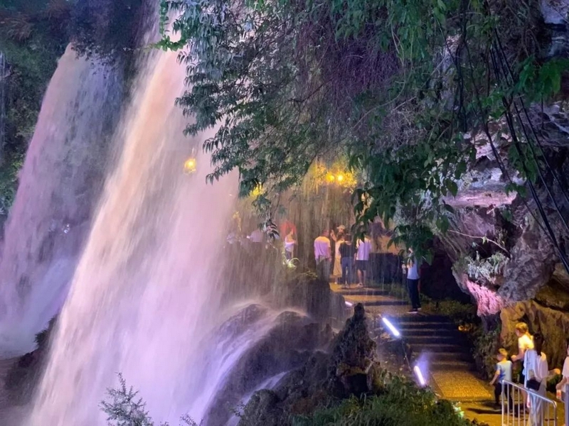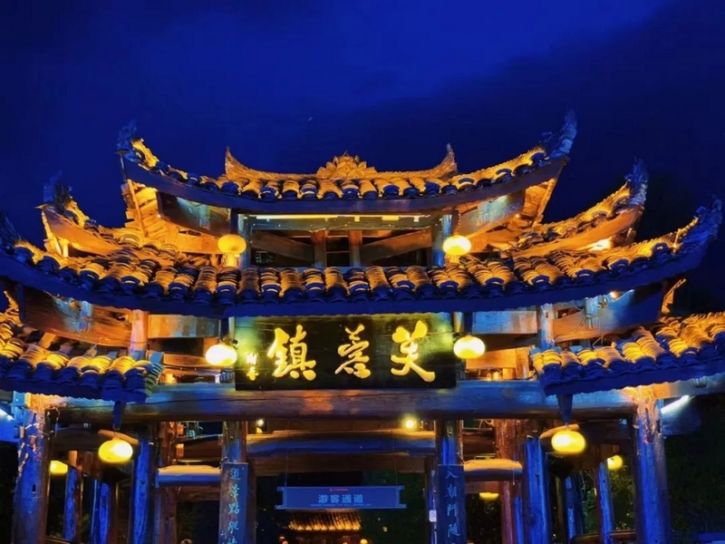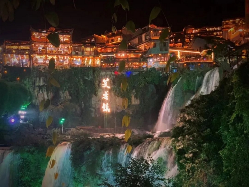 当天晚上,乘坐大巴到达芙蓉镇。踩在石板街上,夜游这座挂在瀑布上的千年古镇—芙蓉古镇。山一程水一程,三生有幸。晚上华灯初上的古镇,在瀑布的雾气缭绕中仿若仙境。比起凤凰,这儿更多了一份奇幻。从瀑布南侧一路向下游走,有视野很好的瀑布台,可以拍到瀑布最美的正面。亦或是往下走,绕到瀑布之下,穿行在瀑布后方,感受瀑布带来的轰轰水声,震撼至极。还可以尝小吃、观夜景、看戏剧,拍古照,大家流连忘返。
