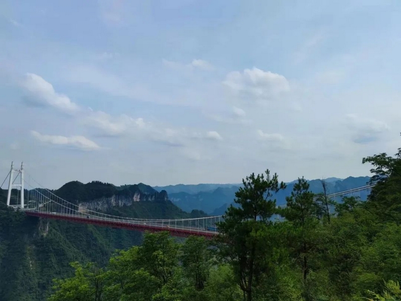 在村民家里享用完午餐后,立即出发前往矮寨。矮寨大桥为双层公路,观光通道两用桥梁。全长1073.65米,悬索桥的主跨为1176米。穿梭在这创造了四项世界第一的大桥上,环顾天桥、天路、天廊等景观,不得不感慨科技的发达,人类的伟大!