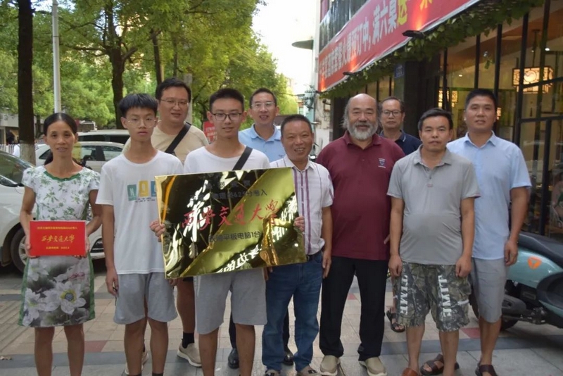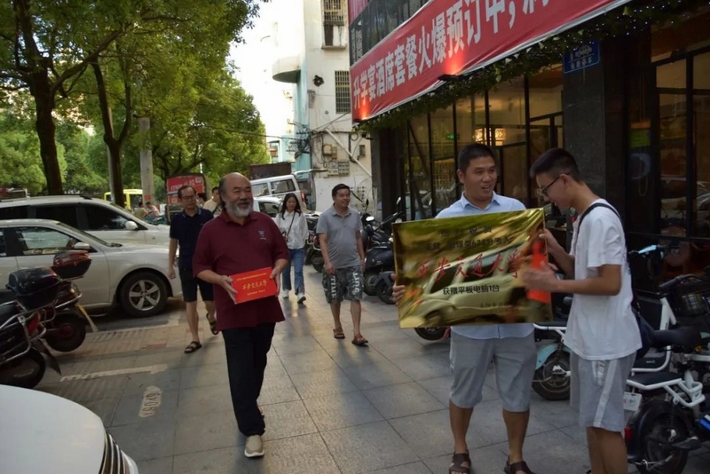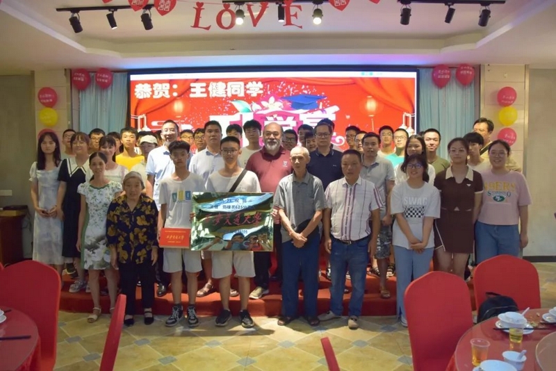 今天是个好日子!8月5日十点半,罗校长一行来到永济镇花园村龙古皂,恭贺袁宏祥598分考取华北电力大学。十二点,又来到衡南县江口镇泉边村恭贺倪杰640分考取华中科大。下午六点,罗校长、高三年级主任钟琼佳又和班主任老师罗经飞以及任课老师、同学们等数十人,带着恭贺铜匾、华为平板电脑来到灶市碧水潇湘酒店,祝贺来自余庆街道办事处石王村21组的王健同学物理类625分、耒阳市理科第13名被西安交通大学录取。