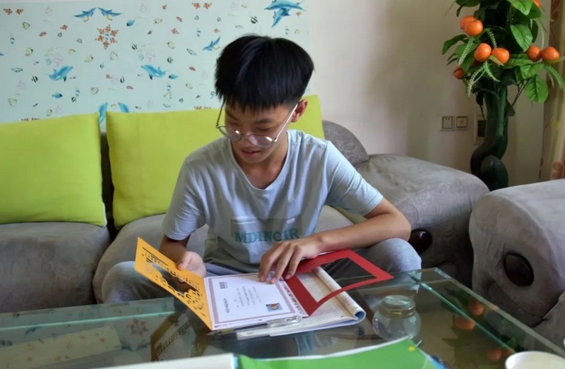 在王健进入正源两年后,弟弟王浩三年级时也被送到了正源。但因体弱多病,读了一年临时转回乡下,由段小霞专职在家照料了两年。调理好身体后,在小升初时又送进了正源。去年直升准高一,过完暑假就读高一了。成绩跟王健当年一样,可以排进年级前几十名。捧着哥哥西安交大的录取通知书,我们问王浩能不能超过哥哥,将来考出比王健耒阳市13名更好的成绩?文静而稳重的王浩没有直接回答,只是坚定地回了一句:“想!”
