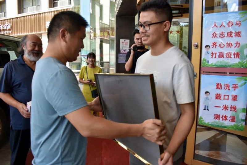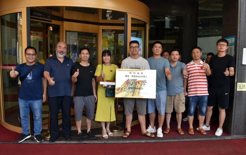 上午十一点,罗校长和班主任罗经飞及任课老师们带着恭贺铜匾、华为平板电脑来到三湘明珠大酒店,祝贺永济镇大河边村2组的黄超同学物理类601分考取东北大学。