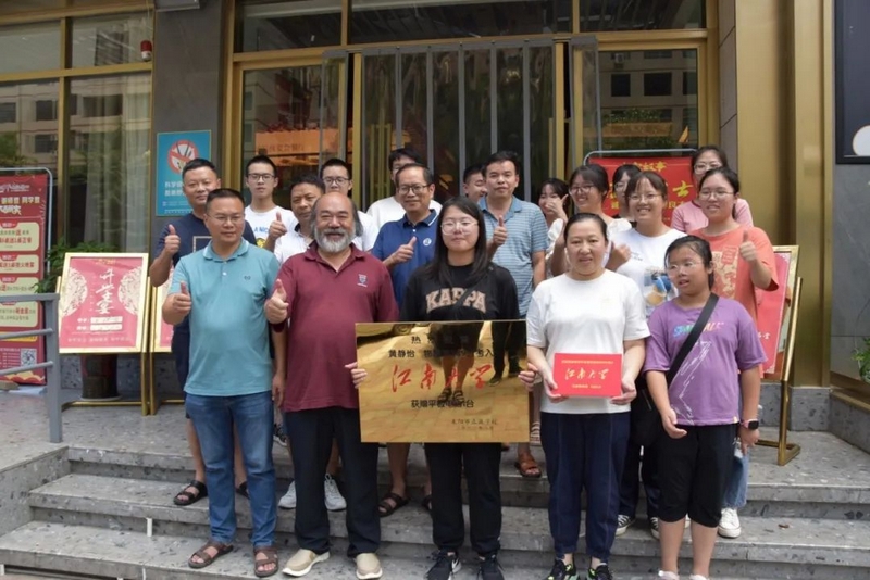 十二点半,罗校长又和任课老师、同学们等数十人,带着恭贺铜匾、华为平板电脑来到德泰隆路赵家故事,祝贺黄静怡同学物理类589分被江南大学录取。