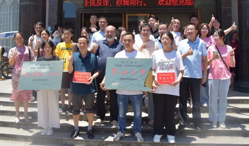 8月9日,罗校长率老师和同学到小水镇贺喜颁奖。李慧高考601分考取南京理工大学,国防七校之一。无独有偶,以592分考取暨南大学的李箴婧同学也在小水同一家酒家办酒。上午12点,小水的街头鞭炮烟花齐鸣,两块铜牌,两台平板电脑在贺喜团队的簇拥下到了主人之手,罗校长在合影时说,今天小水双喜临门,两个正源孩子考上名校,可喜可贺,为她们点赞,为小水点赞。