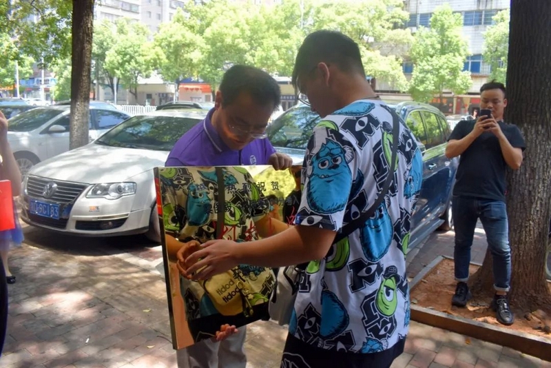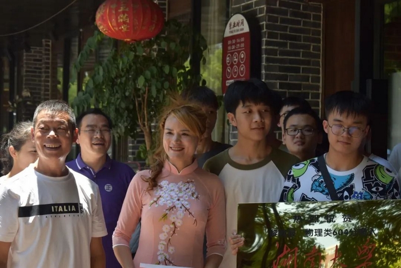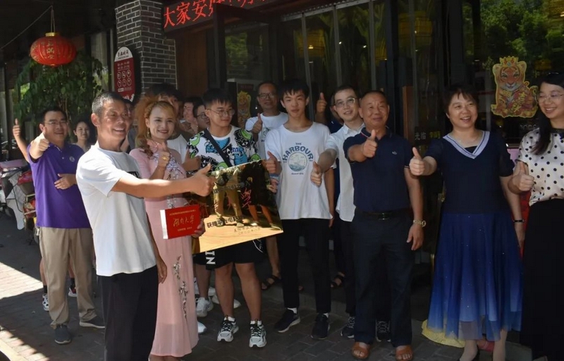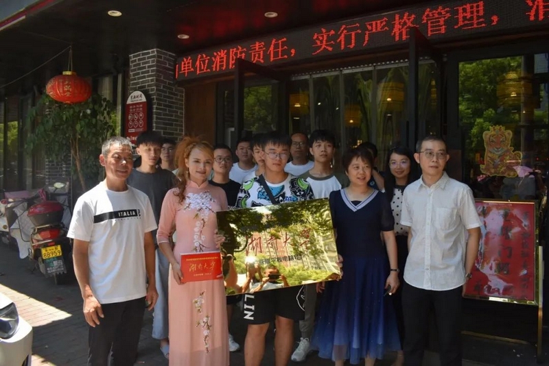 8月17日,党支部书记毛晓波和校财务总监梁晓芬率正源老师和同学们,带着恭贺铜匾、华为平板电脑来到酒店,祝贺黎俊毅同学604分被湖南大学录取。