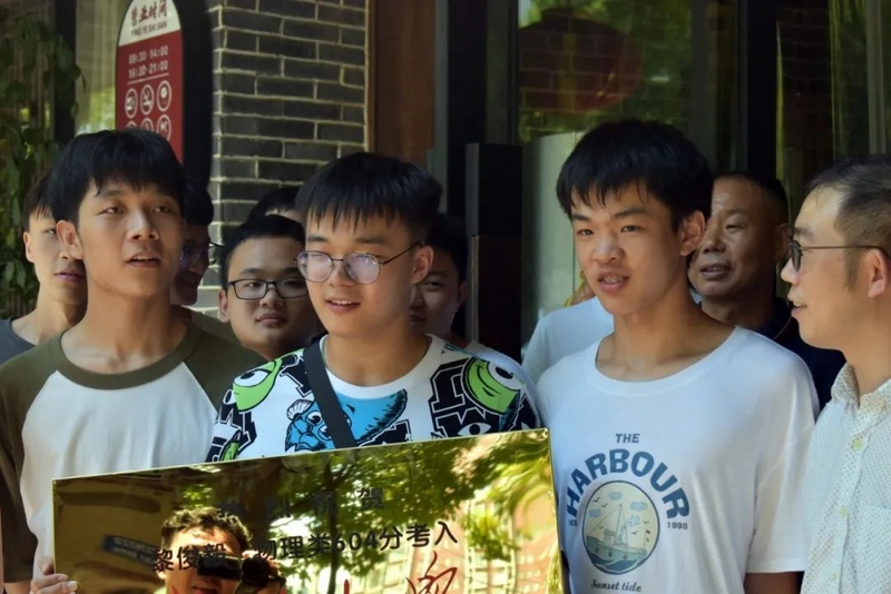 开宴前合影列队时,三位同学特别显眼。置身C位的自然是今天升学宴的主角黎俊毅。形影不离的另外两位,一位是黎俊毅堂哥,今年音乐艺考考取丽水学院的黎传旺;一位是黎俊毅堂弟,今年617分考取中南大学的黎志鹏。