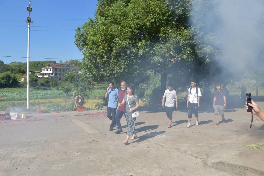 曾家燃放烟花爆竹,众亲友列队相迎。罗校长和老师们满脸笑容,热情的向大家恭贺,小小湾村喜气洋洋。