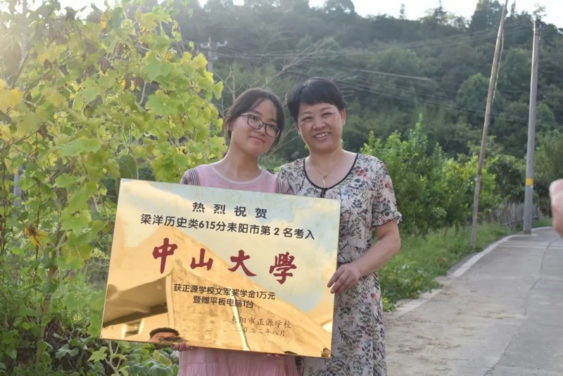 梁洋弟弟梁淇马上高二了,梁平松早早就让他跟随着姐姐的足迹进了正源,如今也能排到年级前一百、前两百的区间。在给梁洋颁奖的禾坪上,罗校长拍着梁淇的肩膀鼓励他向姐姐学习,希望他勇于追赶、奋勇争先,“尽量向姐姐靠齐!”