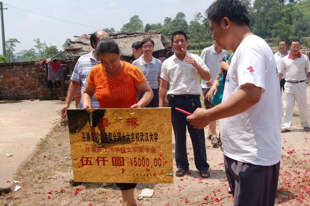 为考取全国十大名校武汉大学的谷穗成同学颁奖(8月18日)