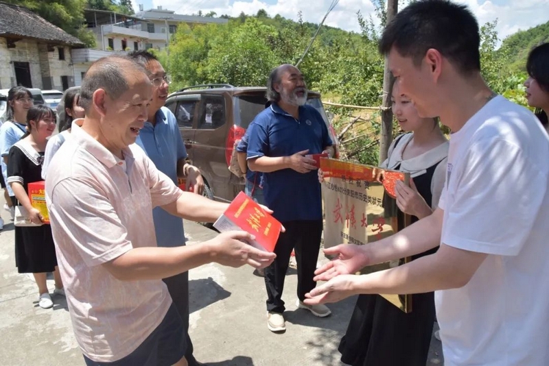 早上8:30,罗校长率领的贺喜颁奖团队,驾车从正源学校出发,首先到考取理科651分耒阳市第三名考取中国科学技术大学的新市镇大兴龙村黄振鑫家,举行了隆重的庆祝仪式。转而赶到郴州市永兴县马田镇为考取北京工业大学的公平镇白鹭村一组吴曼娇颁奖贺喜。临近中午时分,贺喜颁奖团队三路兵马从107国道东转,沿着一条蜿蜒的乡村公路进入鲁碑村。
